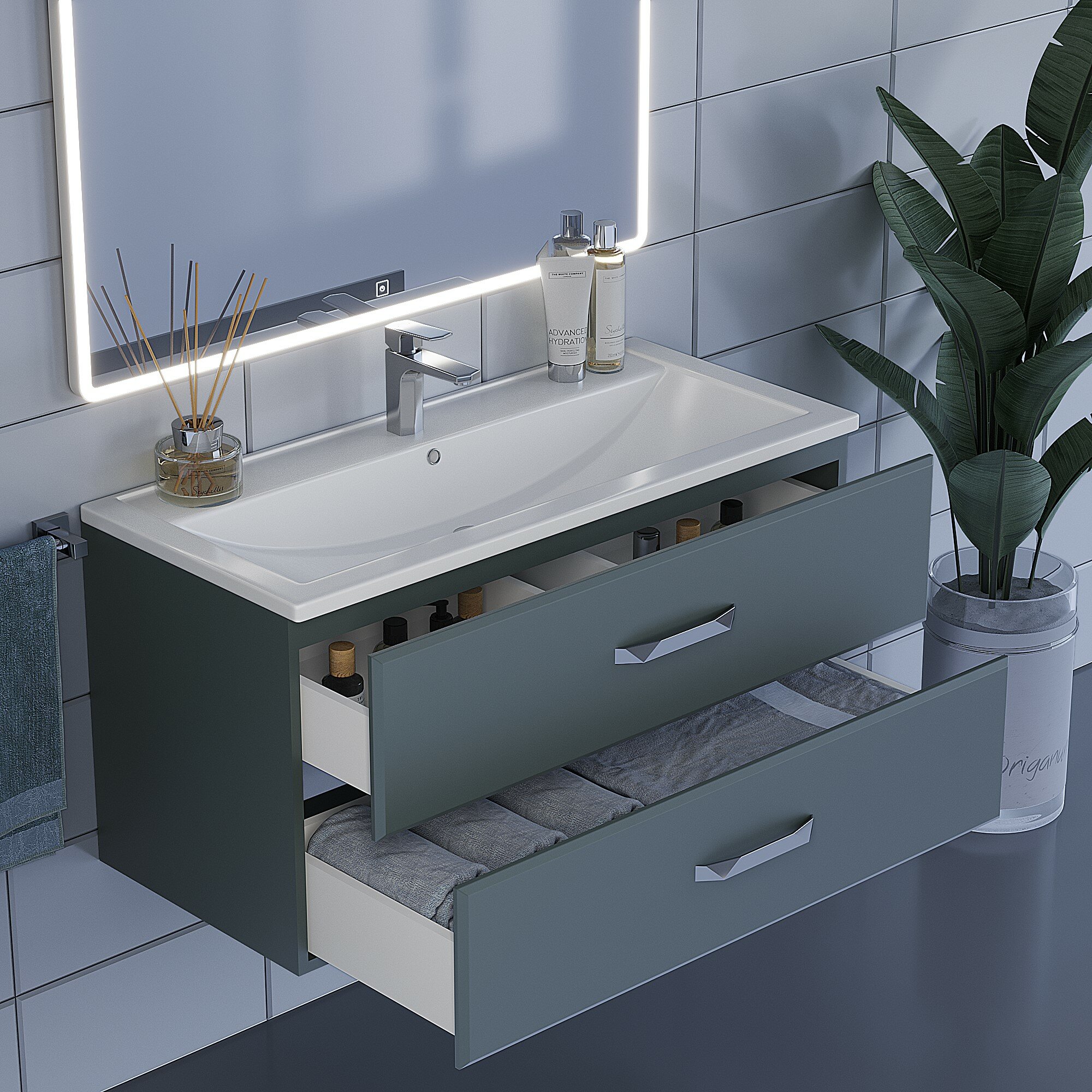 Подвесная тумба под раковину для ванной комнаты Uperwood Foster с двумя выдвижными ящиками, которые оборудованы ручками, представляет собой функциональное, надежное и практичное решение, которое отлично впишется в любой современный дизайн ванной комнаты. Элегантный минималистичный дизайн тумбы дополняет ее безупречная матовая поверхность. Подвесной монтаж изделия обеспечит легкость в уборке помещения, и визуально даст больше пространства Вашей ванной комнате. Фасад и боковые стенки изделия, выполненные из МДФ, покрыты пленкой soft touch. Выдвижные ящики изготовлены из влагостойкой ЛДСП. Ящики оснащены доводчиками. Фурнитура и доводчики премиального качества. Размерный ряд тумб под раковину Foster представлен моделями от 60 до 100 см. 3 самых оптимальных цветовых решения на выбор покупателя - белый, черный, серый графит. Для тумб Foster подходят раковины Uperwood Foster соответствующих размеров от 60 до 100 см. Тумба поставляется в собранном виде, в комплект входит крепеж для подвесного монтажа и ручки.