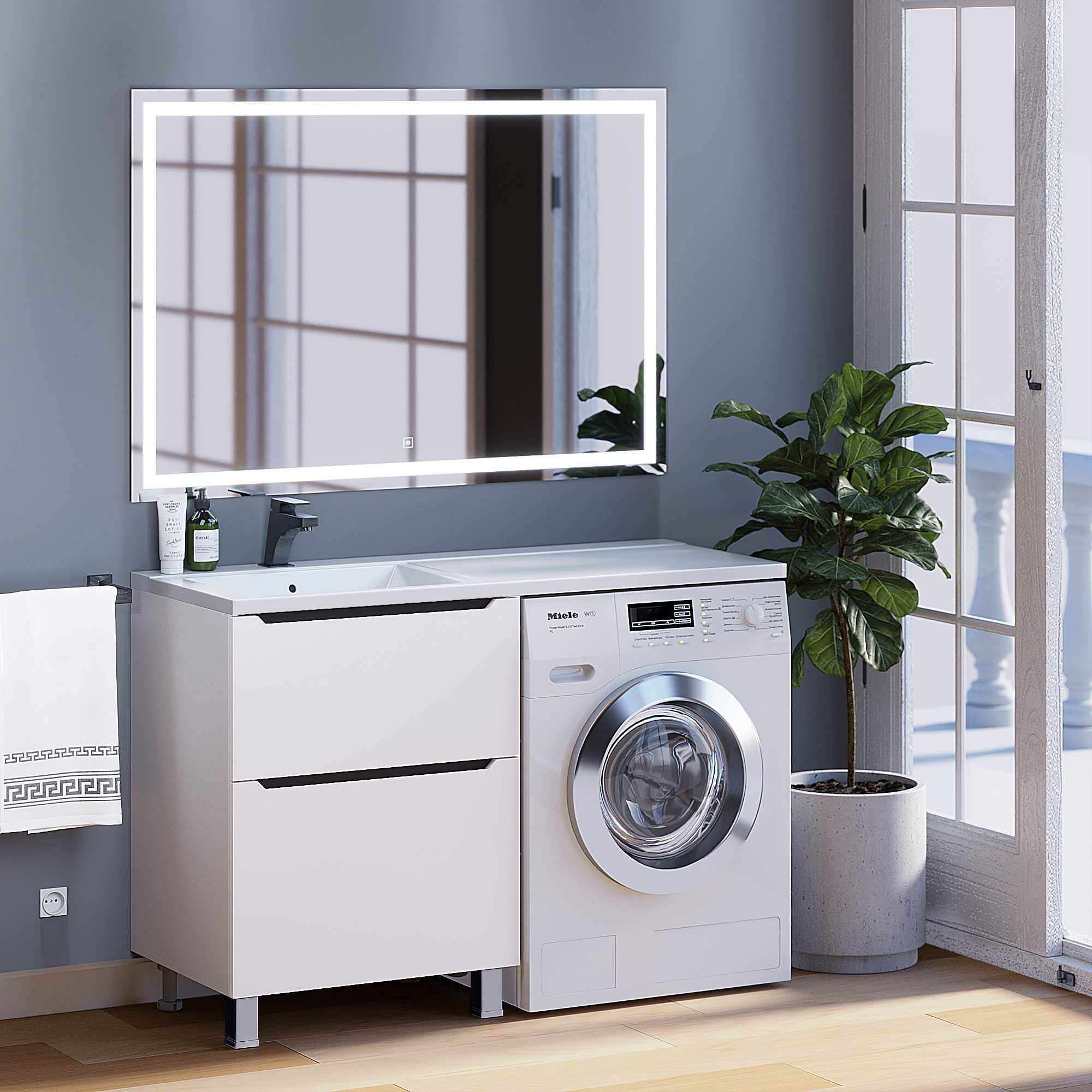 Тумба под раковину для установки со стиральной машиной Uperwood Tanos с выдвижными ящиками представляет собой функциональное, надежное и практичное решение, которое отлично впишется в любой современный дизайн ванной комнаты.Элегантный минималистичный дизайн тумбы дополняет ее безупречная матовая поверхность.Фасад и боковые стенки изделия, выполненные из МДФ, покрыты эмалью Hesse (производство Германия). Толщина МДФ 16 мм.Выдвижные ящики изготовлены из влагостойкой ЛДСП. Ящики оснащены доводчиками. Вся фурнитура и доводчики Hettich, производство Германия.Размерный ряд тумб под раковину Tanos представлен моделями 60 см.Для тумб Tanos подходит раковина Andrea Cosmos или раковина Andrea Bruks шириной 120 см. Под "крыло" раковины устанавливается стиральная машина.Тумба поставляется в собранном виде, в комплект входят ножки для напольного монтажа и крепеж.