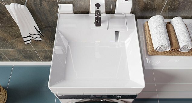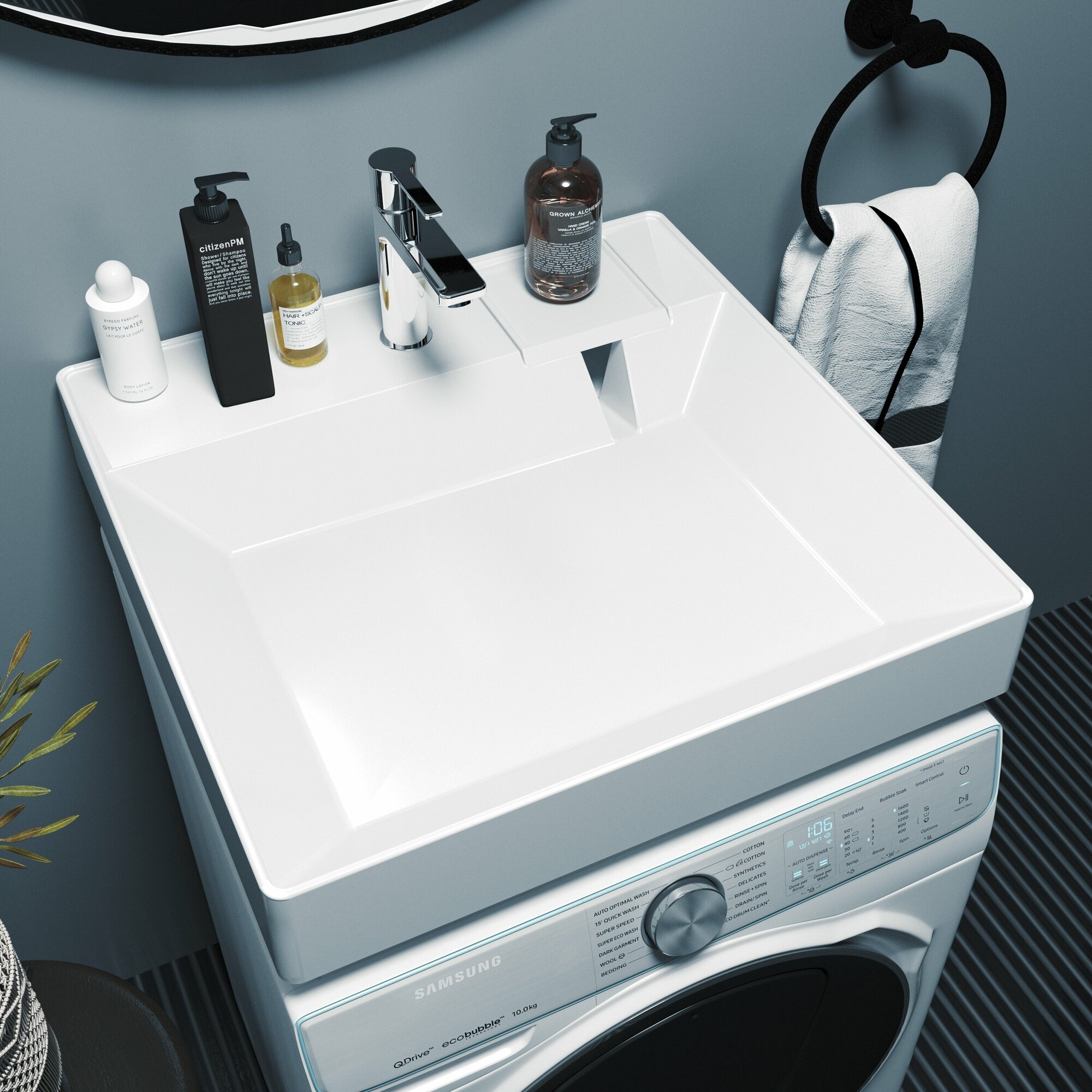 Раковина для ванной комнаты над стиральной машиной подвесная Andrea Cometa 60х60 см, искусственный мрамор, белая глянцевая, мойка, умывальник для туалета.