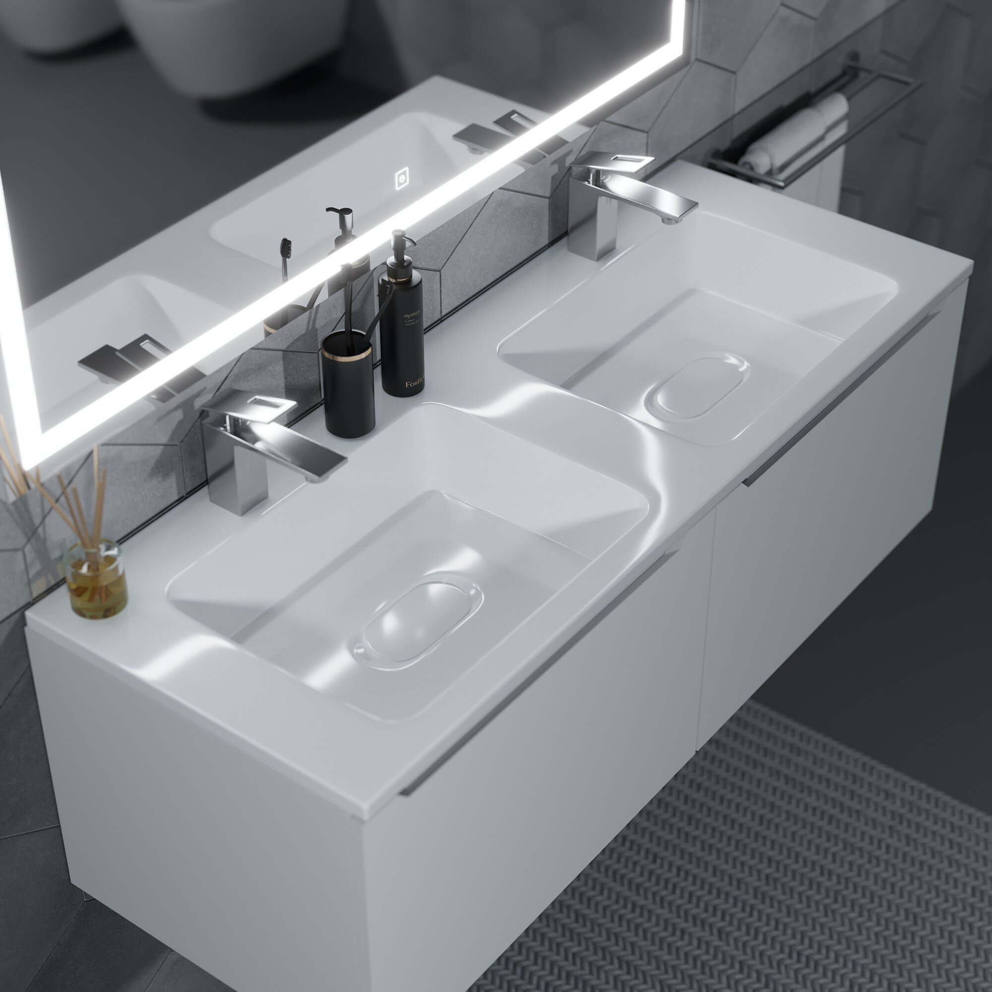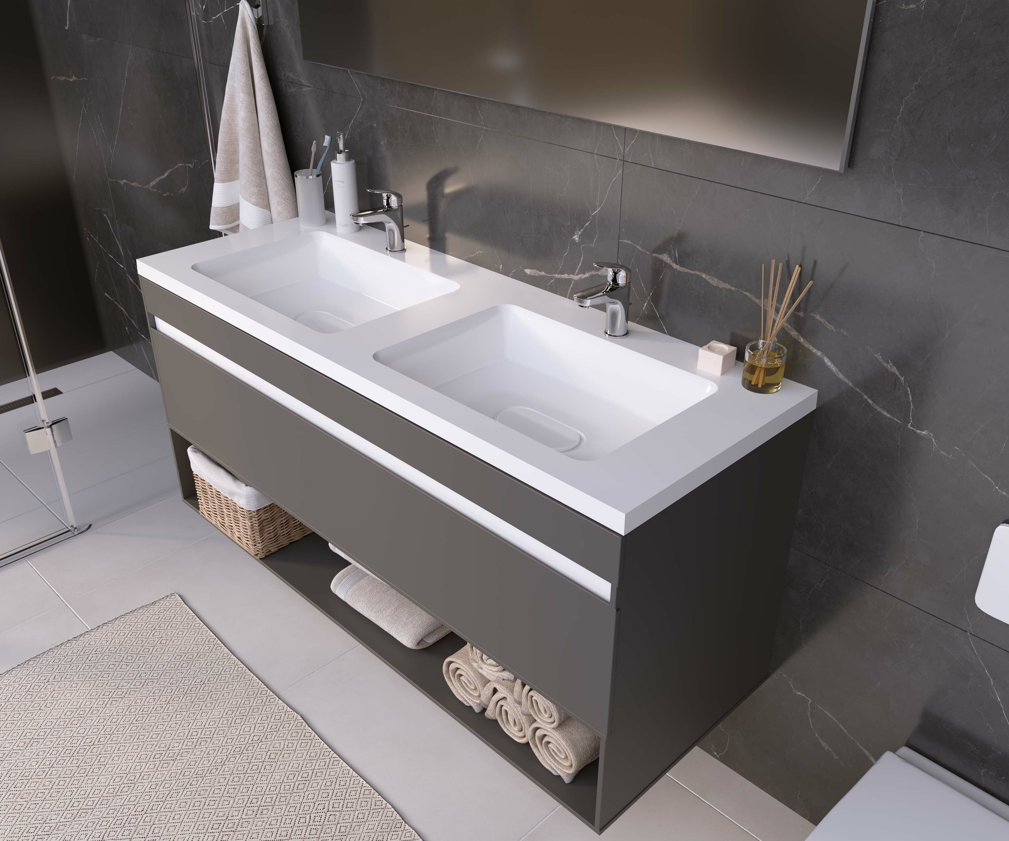 Раковины для ванной из коллекции Uperwood Modul с декоративной крышкой для слива изготовлены из литьевого мрамора с покрытием гелькоут, которое выполняет как декоративную, так и защитную функцию.Материал гарантирует гигиеническую безопасность изделий и характеризуется высокими бактерицидными свойствами.Кроме того, каждая раковина из коллекции Uperwood Modul обладает уникальными характеристиками прочности, устойчивости к истиранию, а также выдающейся стойкостью и качеством цвета.Лаконичная форма раковин отлично впишется любой современный интерьер ванной комнаты. Все раковины имеют отверстие для установки смесителя, а также бортик для размещения ванных принадлежностей.Коллекция Modul представлена раковинами шириной от 50 и 120 см. Раковина Modul 120 см имеет 2 чаши и 2 отверстия для смесителей