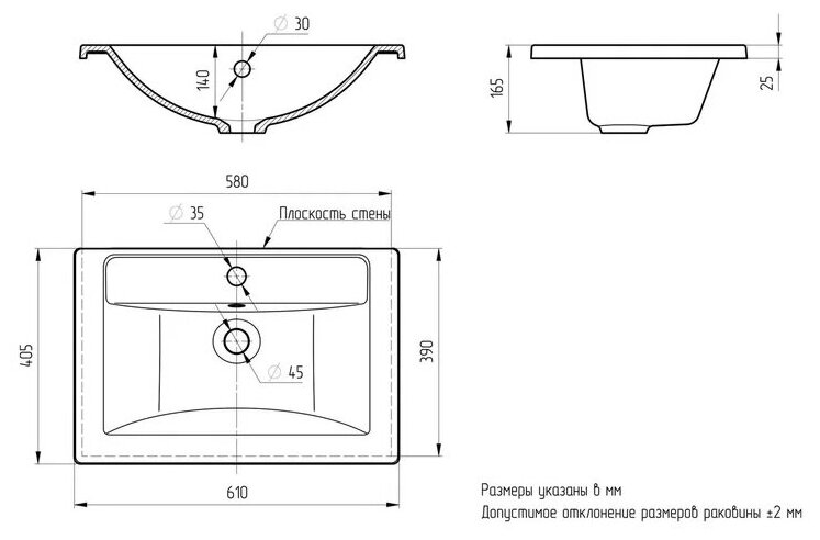 | Высота раковины | 165.000 |