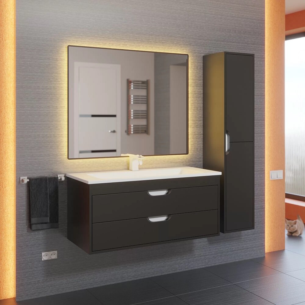 тумба под раковину Uperwood Modul 96 см 2930205155 подвесная, черная матовая