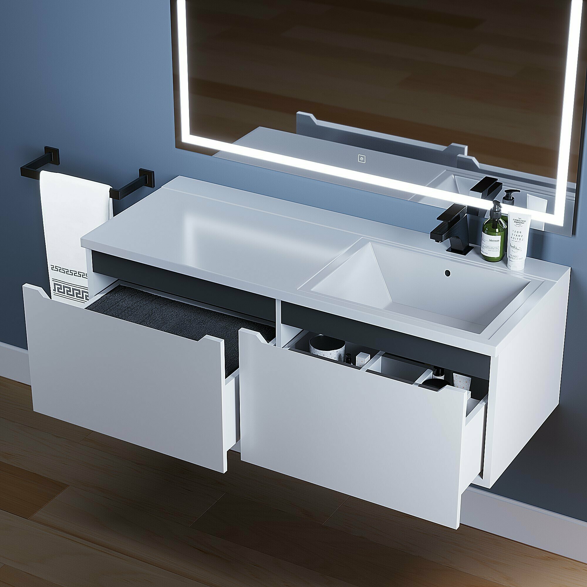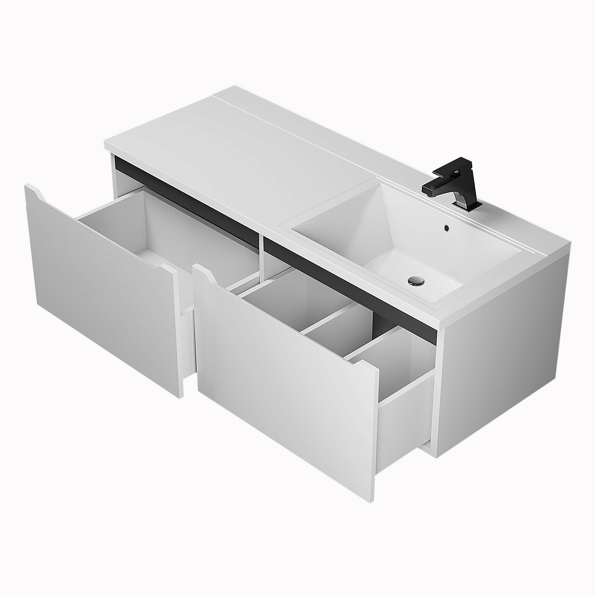 Подвесная тумба под раковину для ванной комнаты Uperwood Tanos с выдвижными ящиками представляет собой функциональное, надежное и практичное решение, которое отлично впишется в любой современный дизайн ванной комнаты.Элегантный минималистичный дизайн тумбы дополняет ее безупречная матовая поверхность. Фасад и боковые стенки изделия, выполненные из МДФ, покрыты эмалью Hesse (производство Германия). Толщина МДФ 16 мм.Выдвижные ящики изготовлены из влагостойкой ЛДСП. Ящики оснащены доводчиками. Качественная фурнитура и доводчики премиум-класса.Размерный ряд тумб под раковину Tanos представлен моделями 120 см правосторонней и левосторонней ориентации. На выбор предлагаются изделия белого цвета или белого с графитовыми вставками.Для тумб Tanos подходят раковины Uperwood Classic, Uperwood Classic New, Uperwood Classic Quartz шириной 120 см. Тумба поставляется в собранном виде, в комплект входит крепеж для подвесного монтажа.