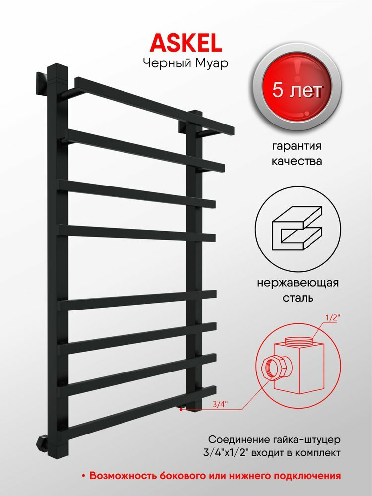 Полотенцесушитель Indigo Askel 80х50 LASWPF80-50BR водяной, черный
