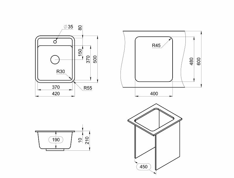 | Размер мойки | 42х50х19 |