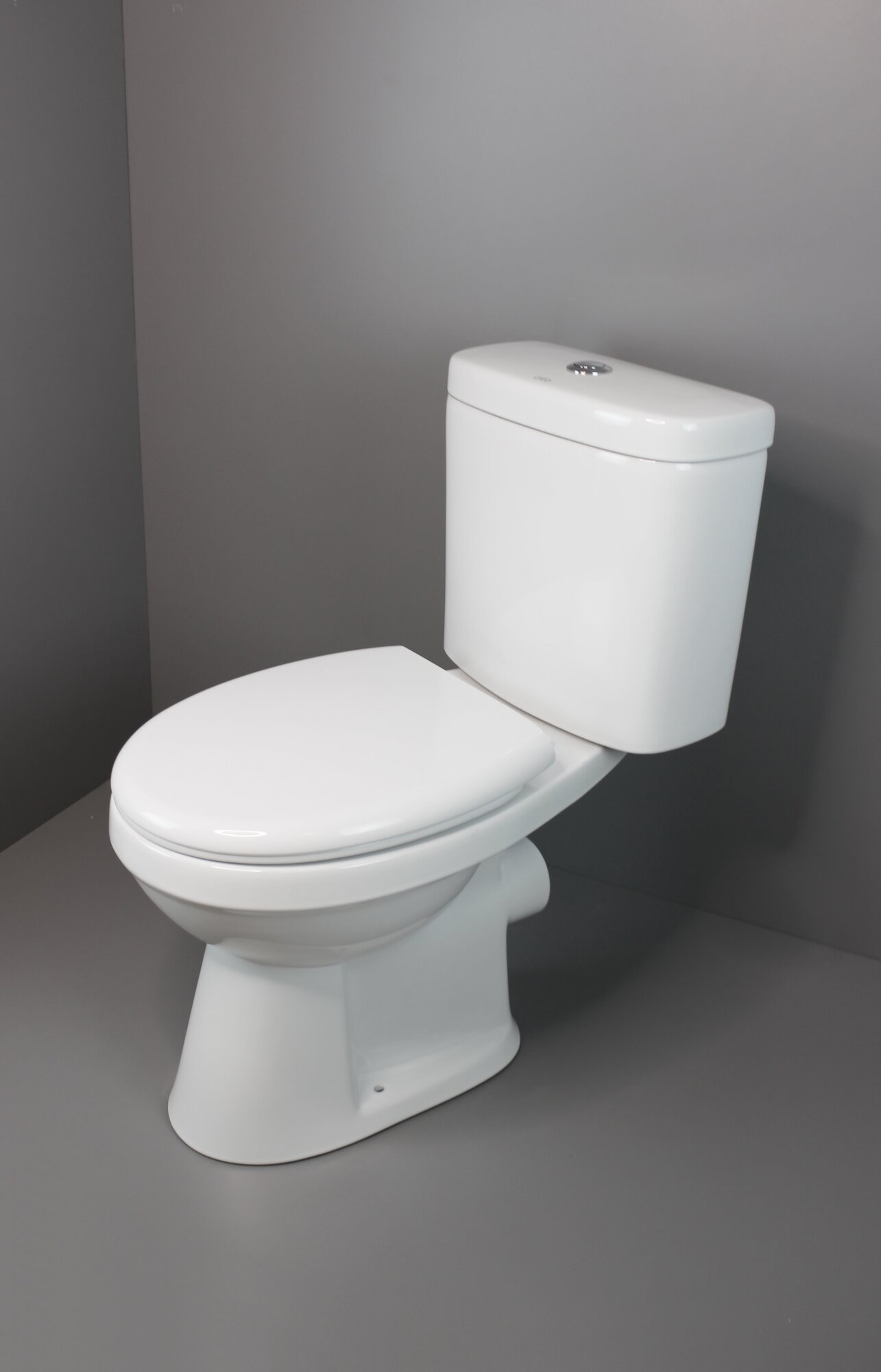 Керамический унитаз-компакт с горизонтальным выпуском. В комплекте поршневая арматура - одинарный слив. Наливной механизм с резьбой 1\2", подвод снизу. Сидение с функцией soft-close. Металлические крепления сливного бачка. Крепление к полу в комплекте.