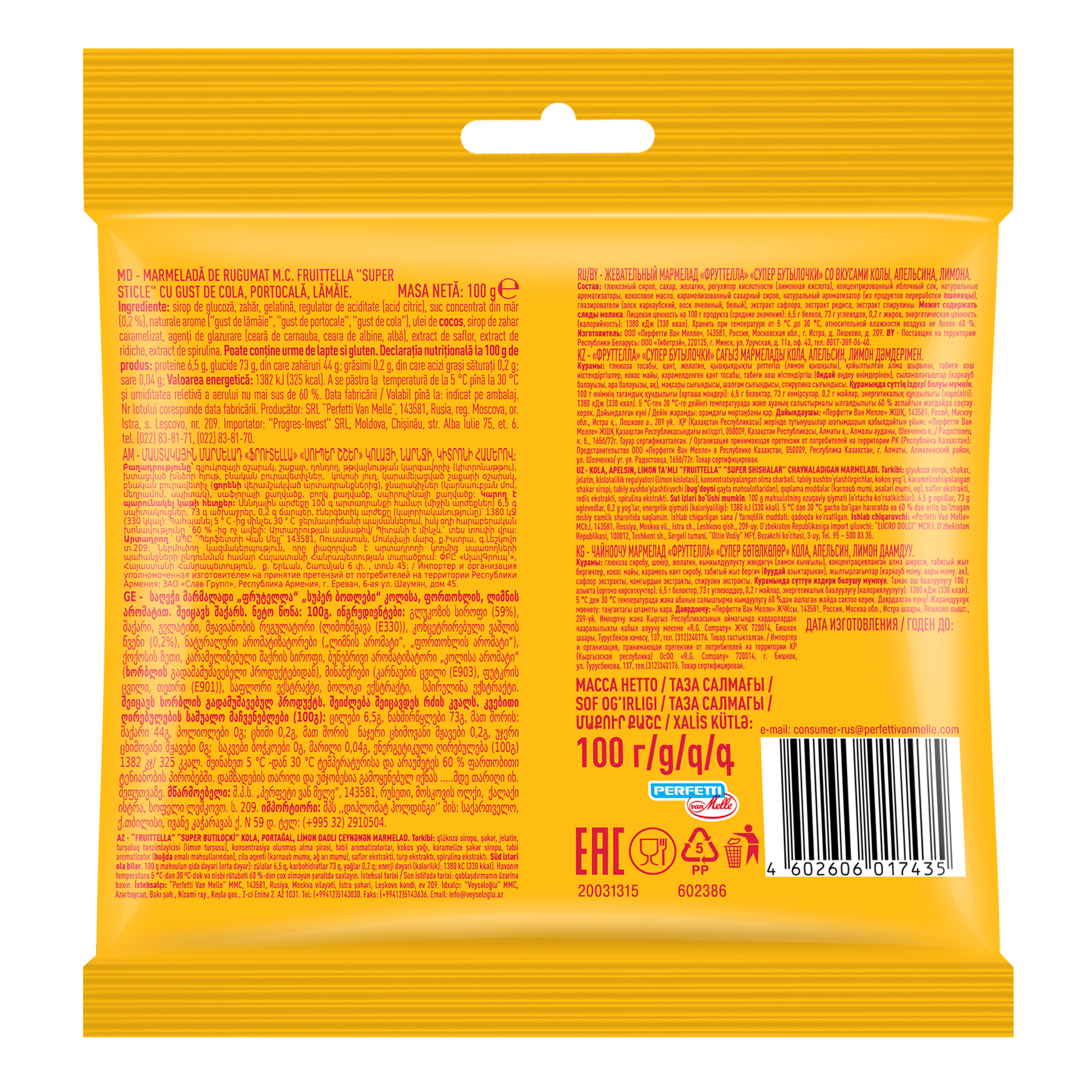 Выбирая мармелад жевательный Fruittella Супер Бутылочки 100г, вы можете быть уверены в его качестве и натуральности. Бренд Fruittella известен своей высокой репутацией и давно зарекомендовал себя как производитель качественных сладостей.