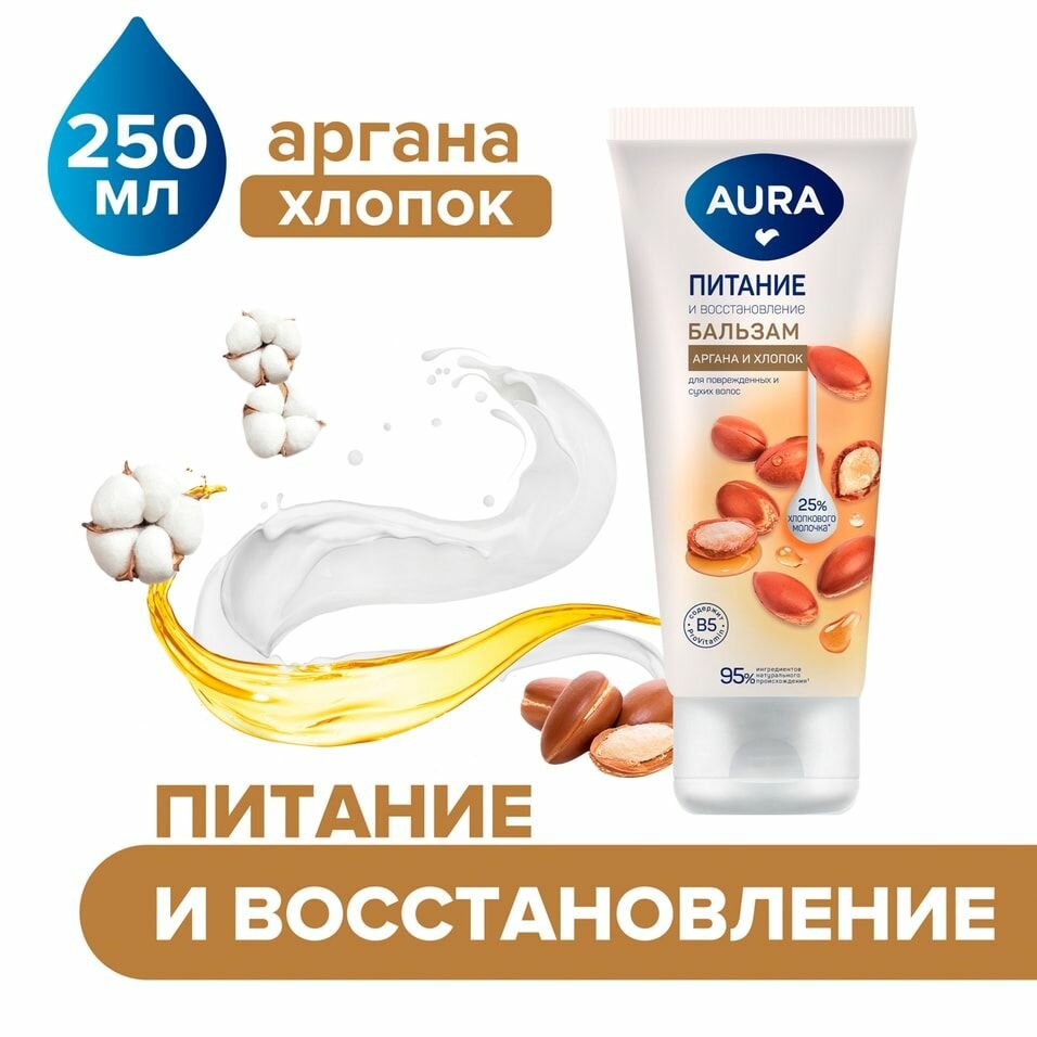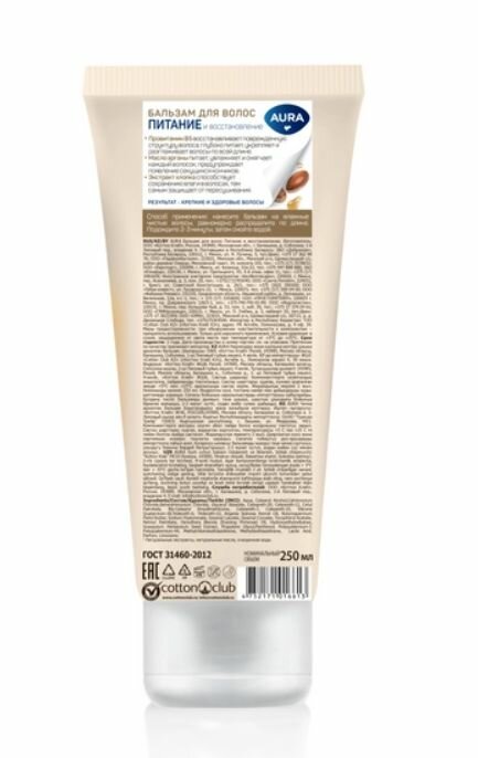 Бальзам для волос Aura Питание и восстановление Аргана и Хлопок 250мл КОТТОН КЛАБ