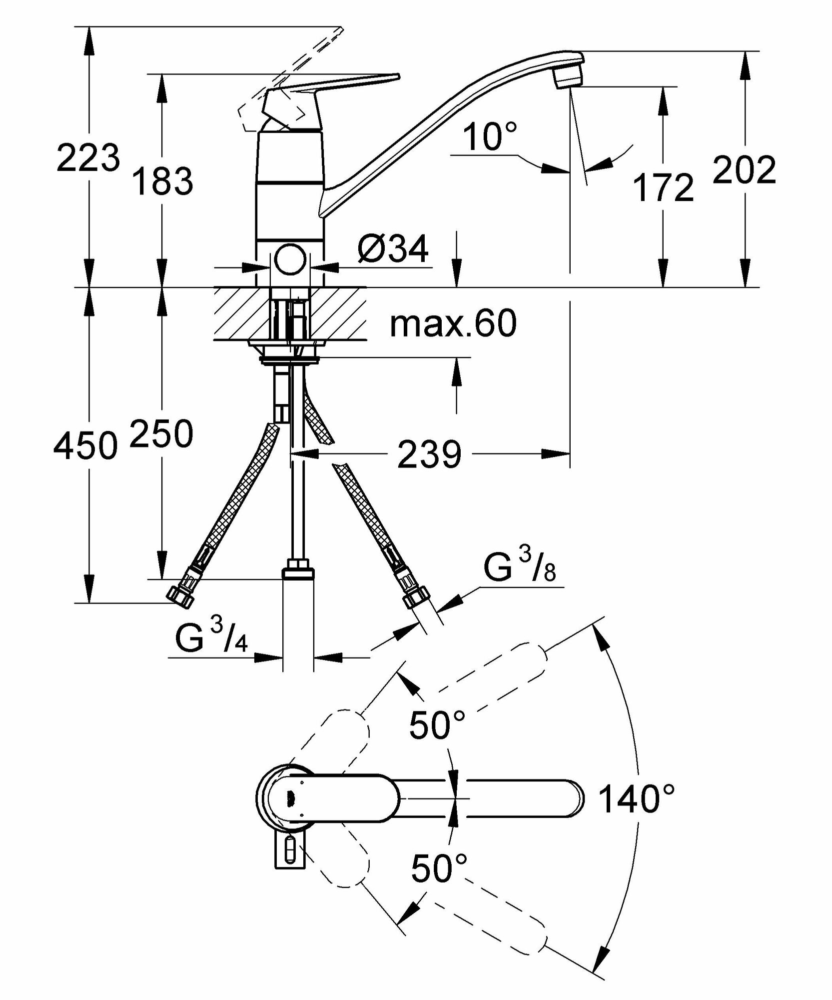 | Подключение | с гибкой подводкой 3/8" |