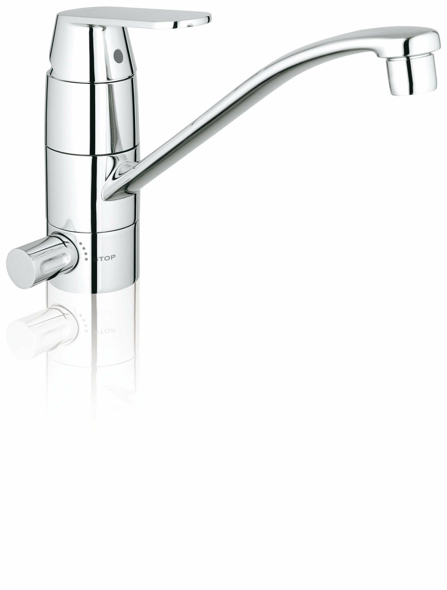 Благодаря конусообразному переходу от корпуса смесителя к рукоятке рычага, силуэт смесителя для кухни Eurosmart Cosmopolitan хром от Grohe выглядит утонченным не в ущерб основательности, а сияющее хромированное покрытие Grohe StarLight выгодно его подчеркивает.