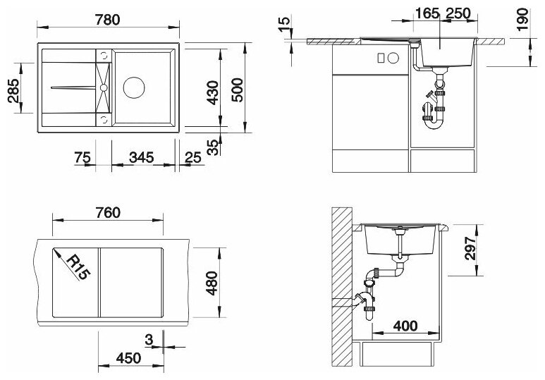 В комплекте поставки: мойка, отводная арматура с клапаном-автоматом.