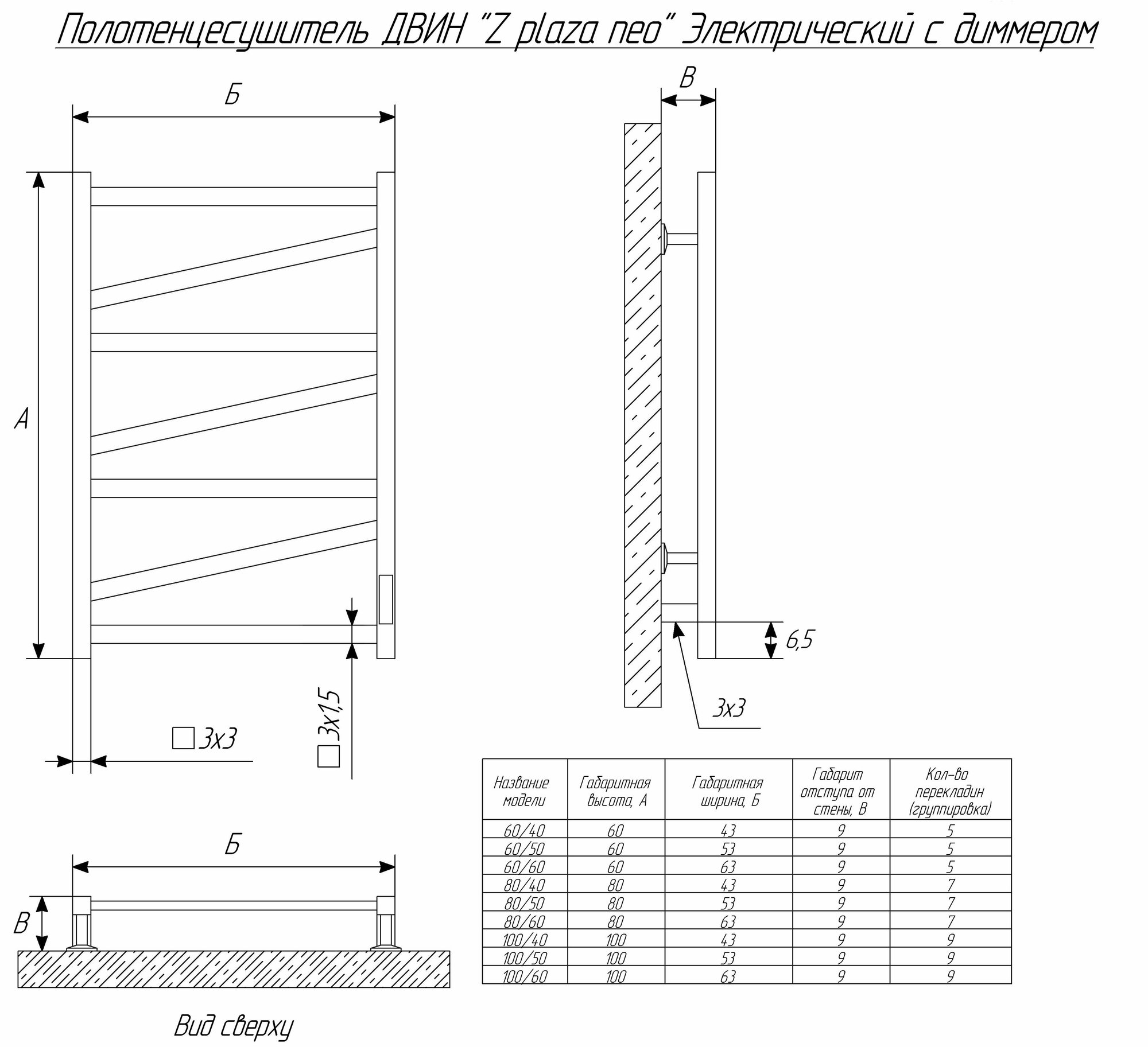 Полотенцесушитель Двин Z plaza neo 80x50 4657771772672 чёрный матовый