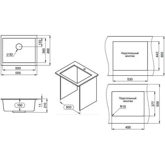 - Встраивается выше уровня столешницы / встраивается ниже уровня столешницы / борт мойки находится на одном уровне со столешницей