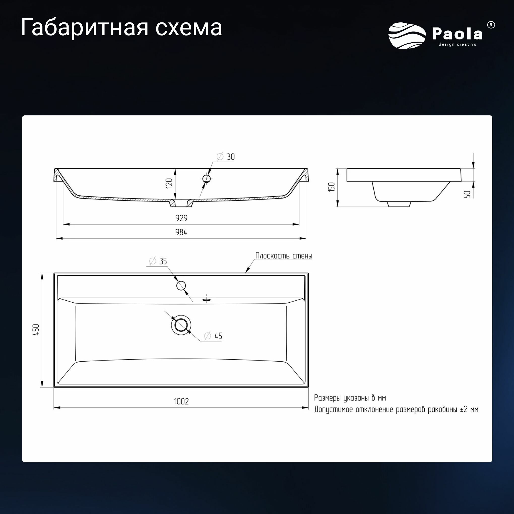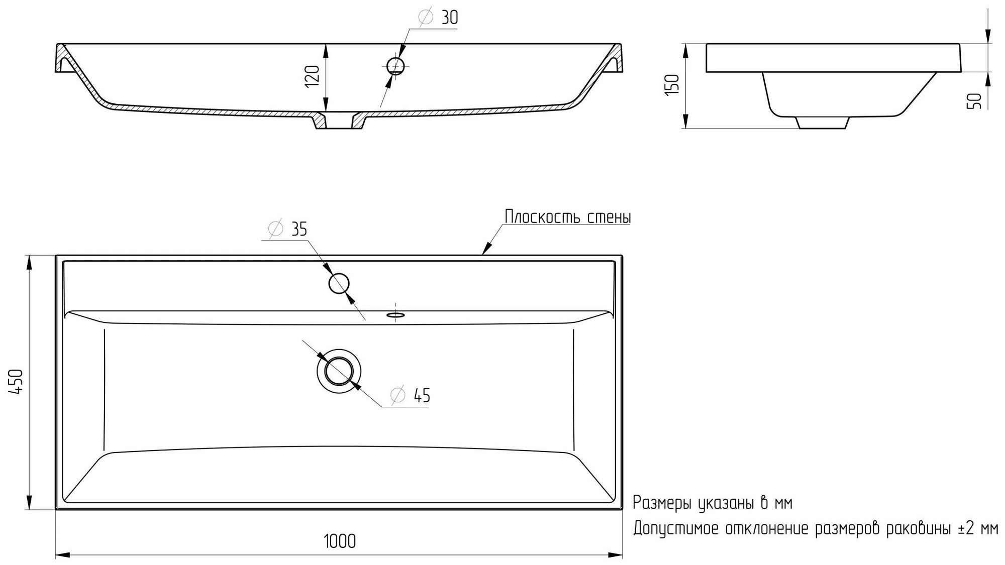 | Ширина раковины | 1000.000 |