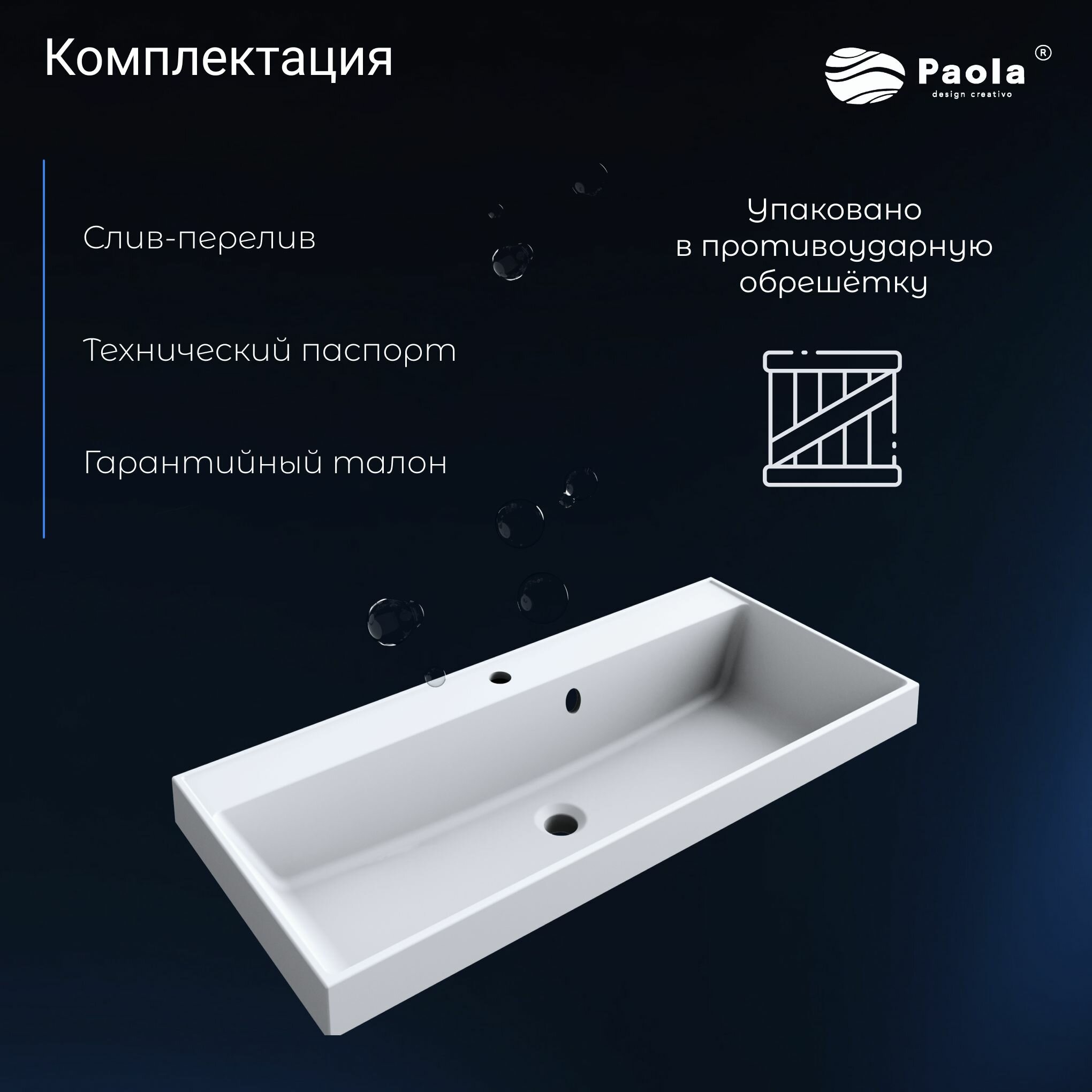 Раковина Paola Alba 1000 100 см белая глянцевая