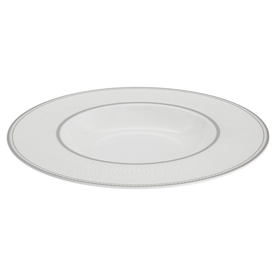 Серебряная резная отводка по краю придает предметам коллекции благородный вид.