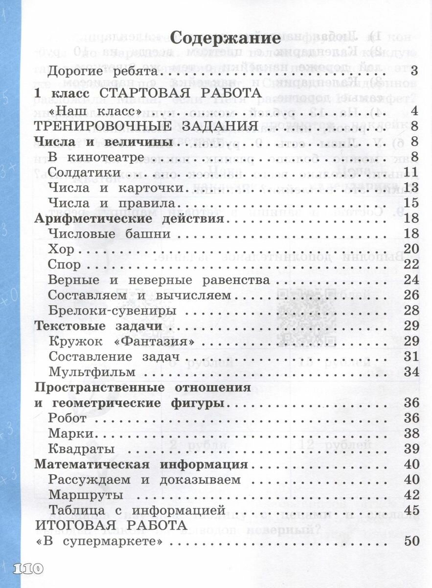 Работая с пособием, обучающийся может показать свою готовность справляться с заданиями на применение математики в непривычных для урока практических ситуациях (стартовая и итоговая работа), потренироваться в выполнении групп заданий с общим реальным сюжетом и неочевидными подходами к решению (тренировочные задания).