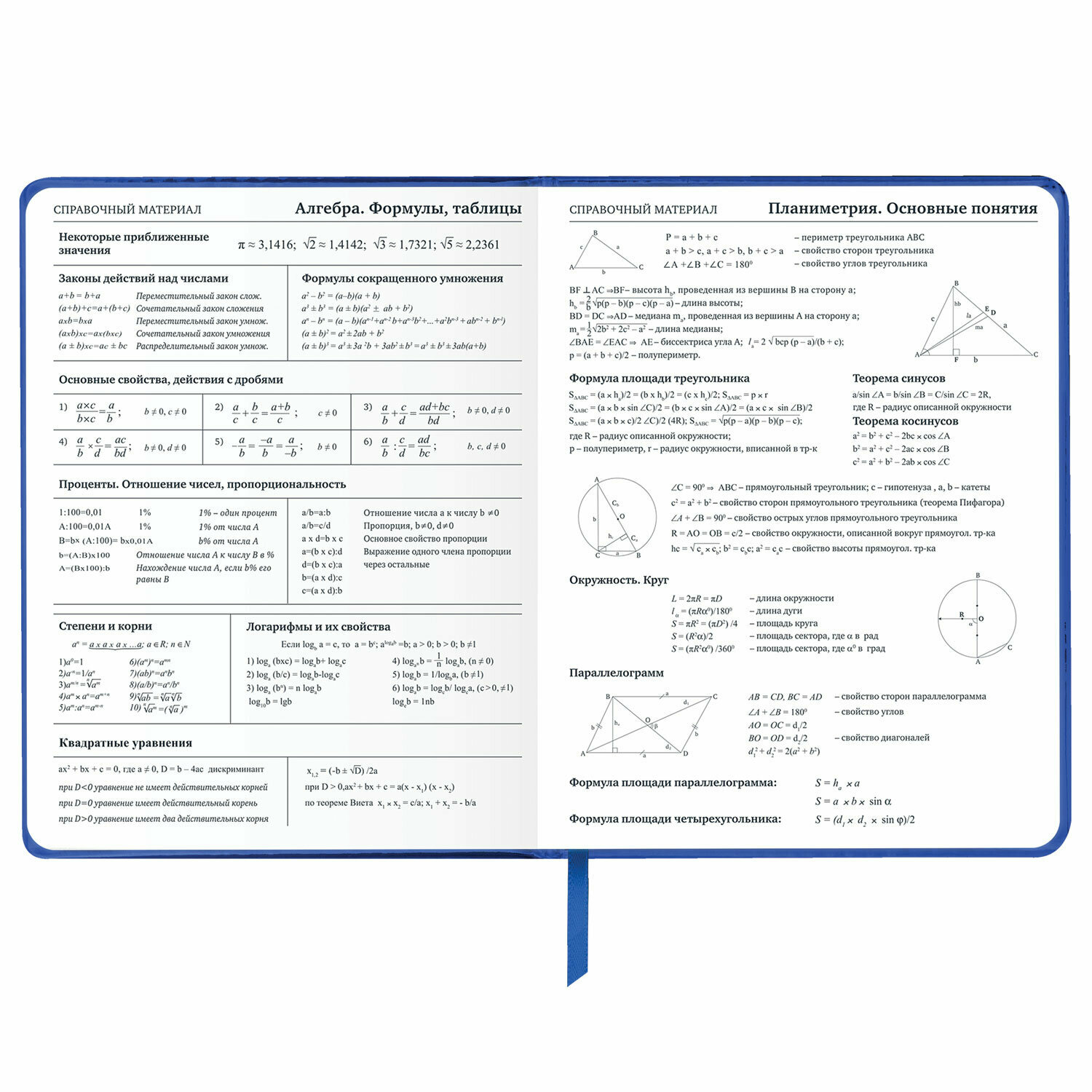 | Особенности | закругленные углы; с закладкой; справочные материалы |