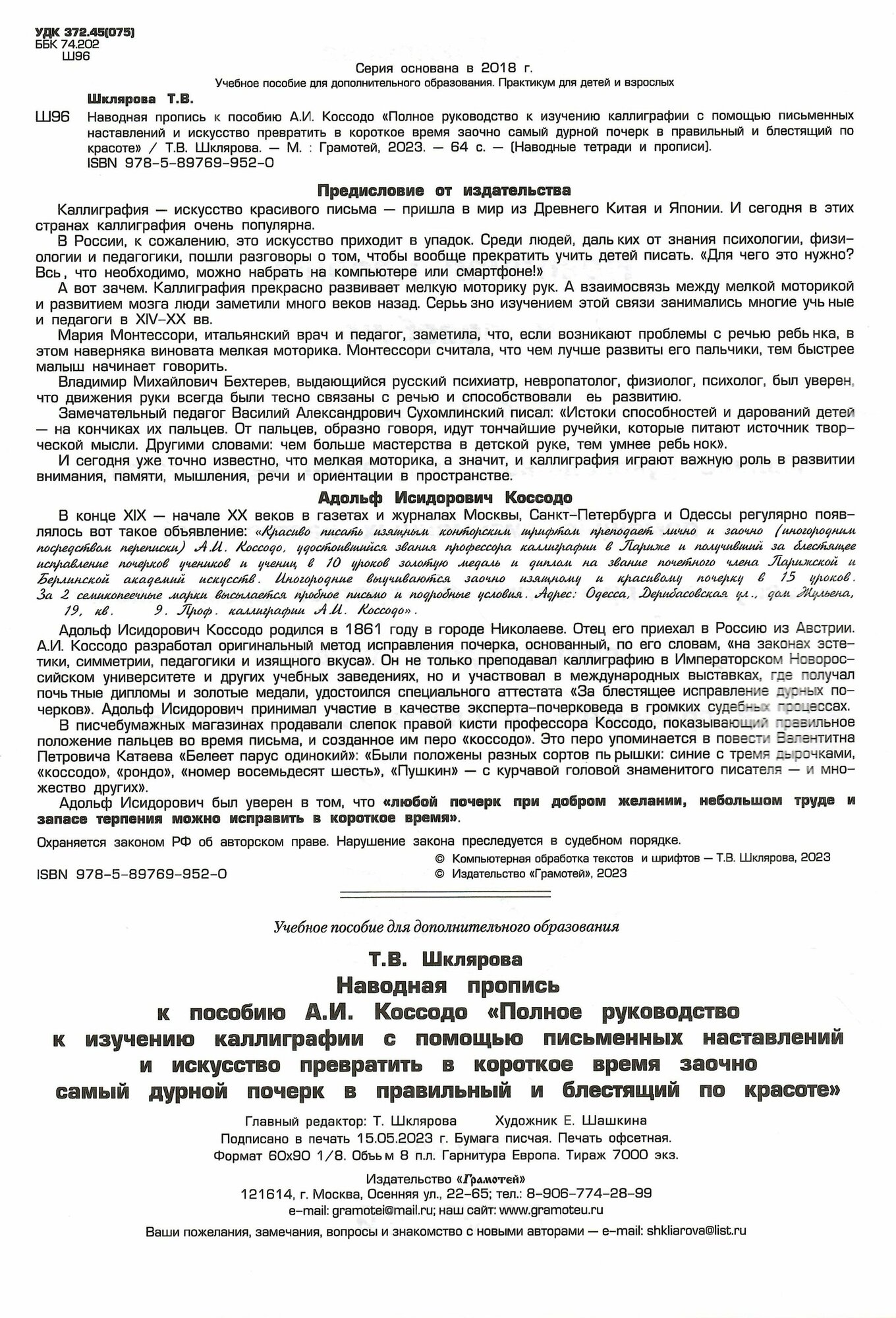 Наводная пропись к пособию А.И. Коссодо (Шклярова Татьяна Васильевна); Грамотей, 2023