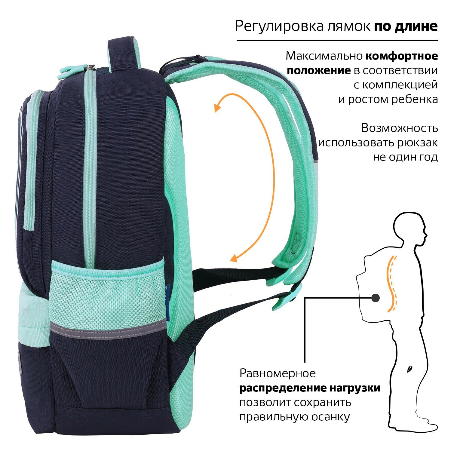 Удобная мягкая вентилируемая спинка с воздушными спонжевыми панелями разработана с учетом анатомических особенностей детей младшего и среднего школьного возраста. В процессе эксплуатации равномерное распределение нагрузки позволит сохранить правильную осанку!