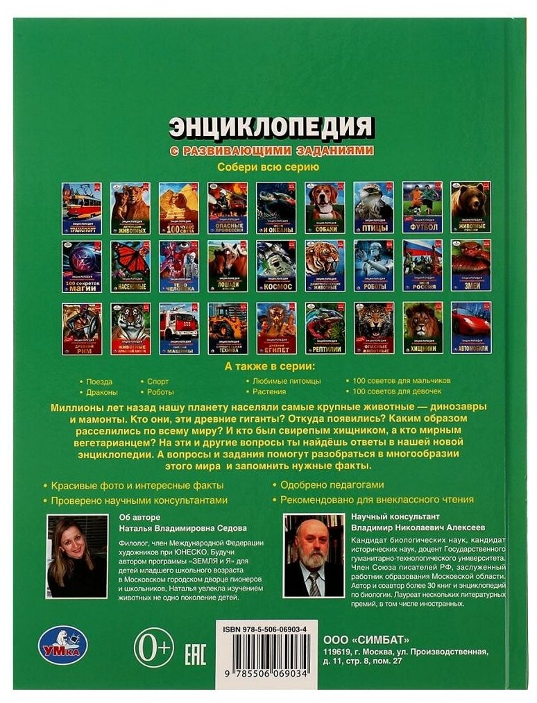 На страницах этой книги юные читатели встретятся с доисторическими самыми большими обитателями планеты, населявшими её миллионылет назад. Они узнают, как выглядели динозаврыи мамонты, чем они питались, как оборонялись от врагов. Яркие иллюстрации и невероятные факты ждут настоящих исследователей.