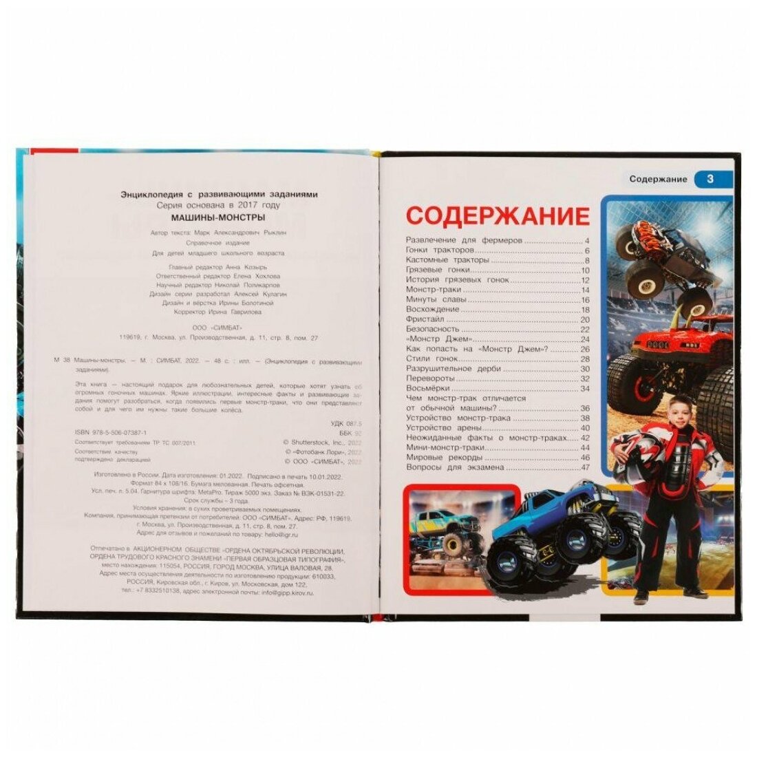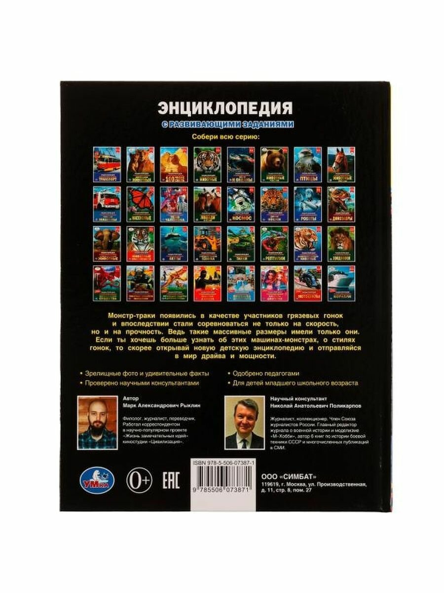 Эта занимательная энциклопедия познакомит юного читателя с необычными автомобилями, именуемыми машинами-монстрами. Зрелищные картинки и удивительные факты увлекут ребёнка и помогут ему быстро, эффективно и с удовольствием усвоить новую информацию.