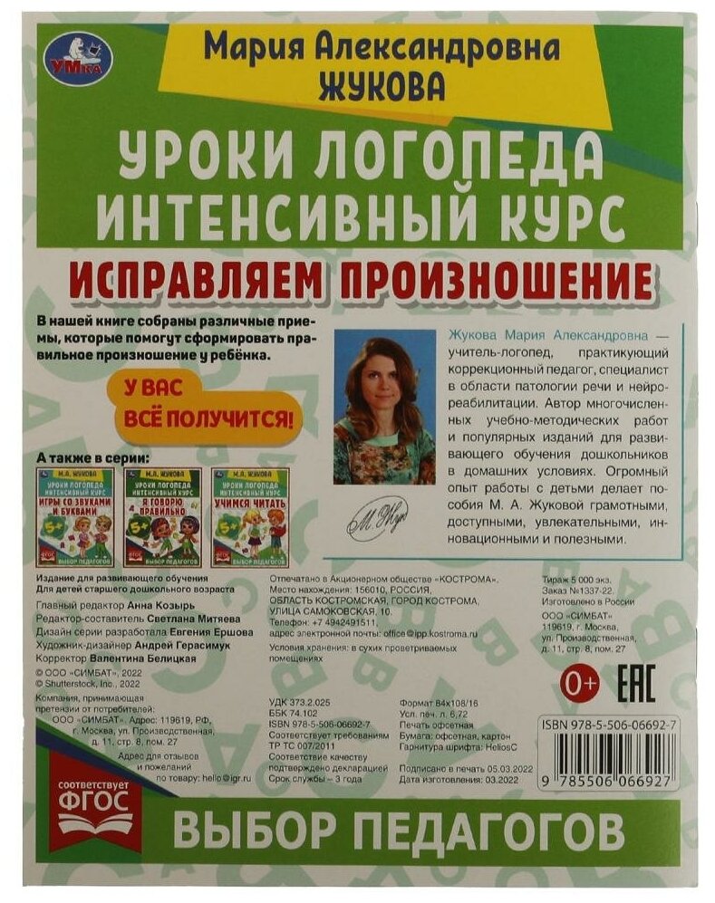 Книга: Исправляем произношение (Жукова Мария Александровна); Умка, 2022