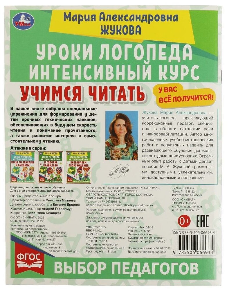 Данное пособие составлено Марией Александровной Жуковой - учителем-логопедом, практикующим коррекционным педагогом, специалистом в области патологии речи и нейрореабилитации. Она является автором многочисленных учебно-методических работ и популярных изданий для развивающего обучения дошкольников в домашних условиях. Огромный опыт с детьми делает пособия М. А. Жуковой грамотными, доступными, увлекательными, инновационными и полезными.