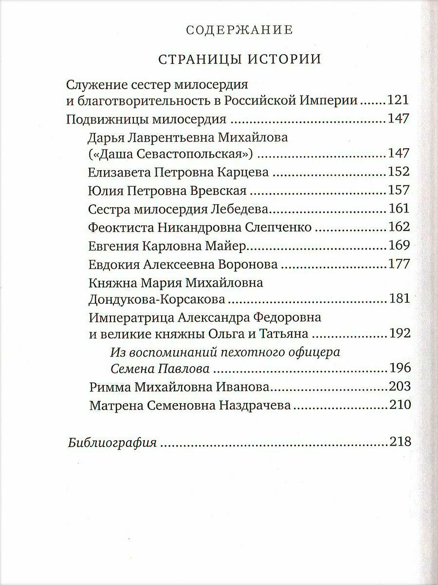 Очерк о сестринском служении познакомит с историей благотворительности в России более чем за два столетия. Известные подвижницы прошлого, такие, как «Даша Севастопольская», Юлия Вревская, Римма Иванова и другие, рассказы о которых помещены в книге, явят примеры христианского делания для сестер милосердия наших дней.
