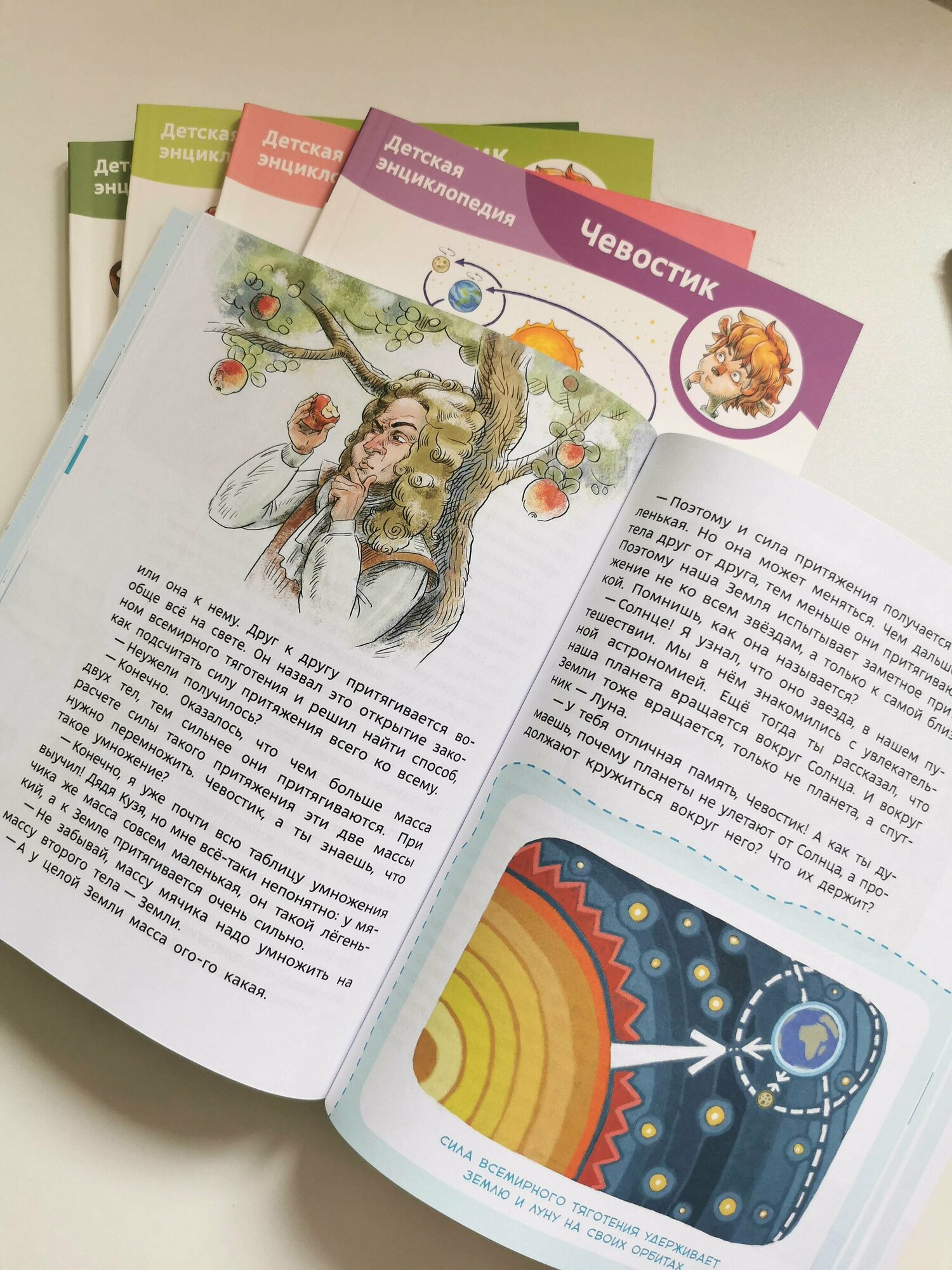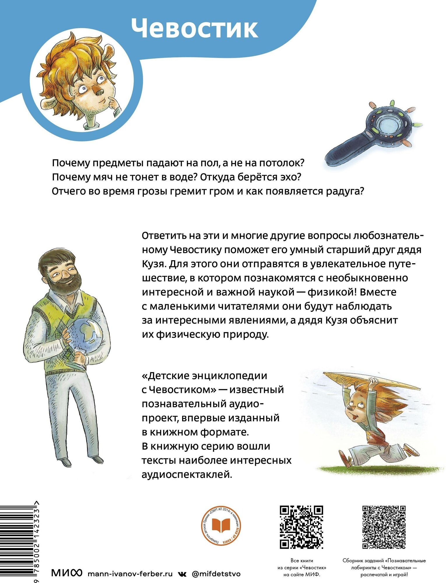 Книга «Планета Земля» отправляет любимых героев детей — Чевостика и дядю Кузю — в кругосветное путешествие вокруг Земли. Во время путешествия Дядя Кузя расскажет о многих природных явлениях и причинах их появления. «Увлекательная химия» расскажет маленьким эрудитам о том, что такое молекулы, атомы, из чего состоит все вокруг. «Увлекательная физика» с юмором объяснит физические явления и базовые законы: почему предметы падают на пол, а не на потолок; откуда берется эхо; почему мяч не тонет в воде.