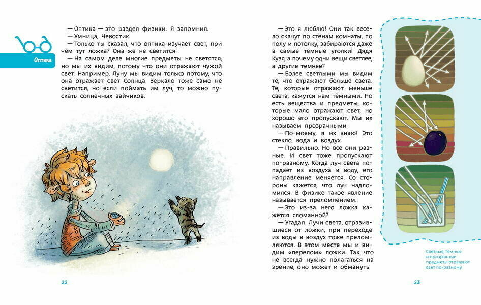 "Увлекательная физика" с юмором объяснит физические явления и базовые законы: почему предметы падают на пол, а не на потолок; откуда берется эхо; почему мяч не тонет в воде.