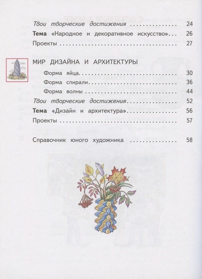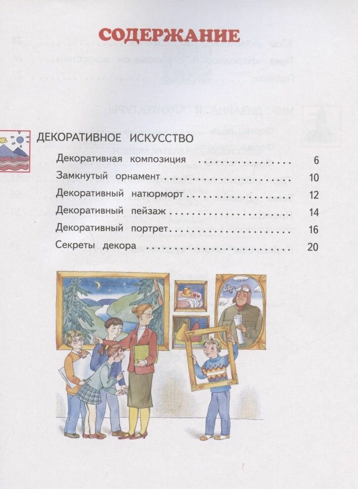 Характерной особенностью учебно-методического комплекса Н. М. Сокольниковой является тесная связь учебной и внеклассной работы, в которую входят различные виды проектной деятельности. У педагога и учеников есть возможность свободного выбора материала, средств и методов обучения, большой потенциал для свободного творчества: в учебнике представлены сведения по всем видам искусства, историческая и справочная информация, задания арт-терапии, а сориентироваться в учебных задачах помогут маршрутные листы, предваряющие каждую тему. Материал разделен на инвариантную и вариативную части. Учебник соответствует федеральному государственному образовательному стандарту начального общего образования.