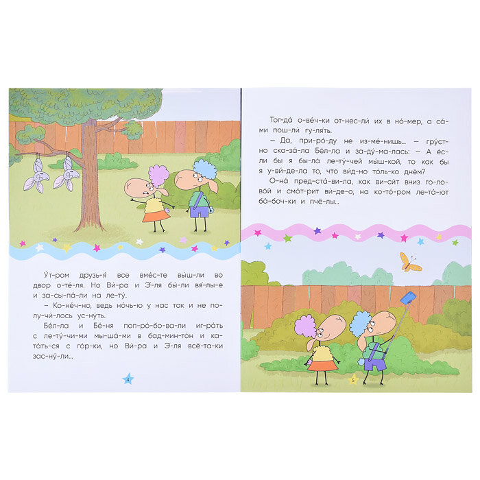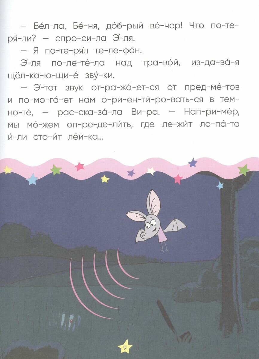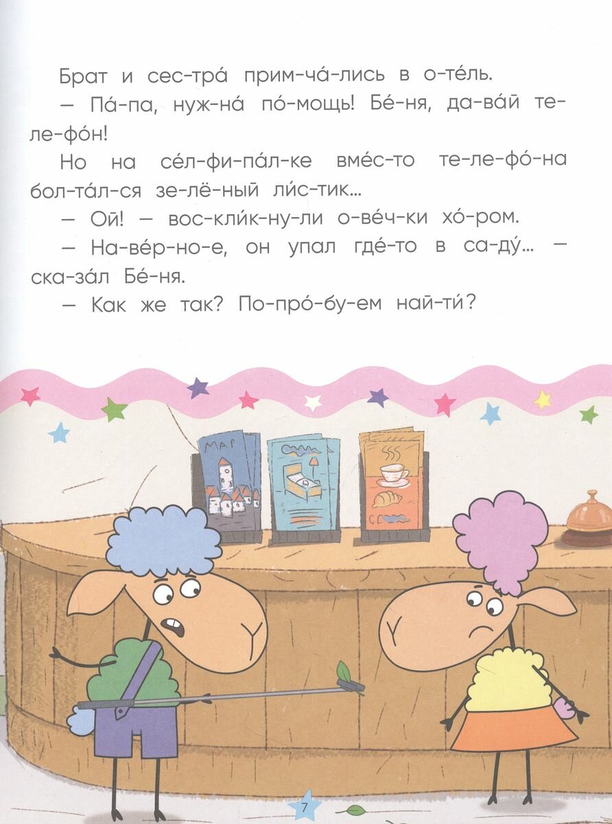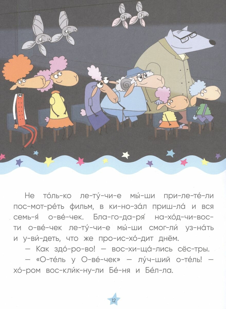 «Отель у Овечек» — лучший отель, в котором живут веселые и любознательные овечки Белла и Беня. С ними вы точно не заскучаете! Однажды в отель приезжают летучие мыши. Белла и Беня очень хотят поиграть с ними, но ведь мыши спят днем, а ночью улетают на прогулку. Как же быть? Забавные персонажи, крупный шрифт, слова с ударениями и по слогам — все это поможет сделать чтение увлекательным занятием для ребенка.