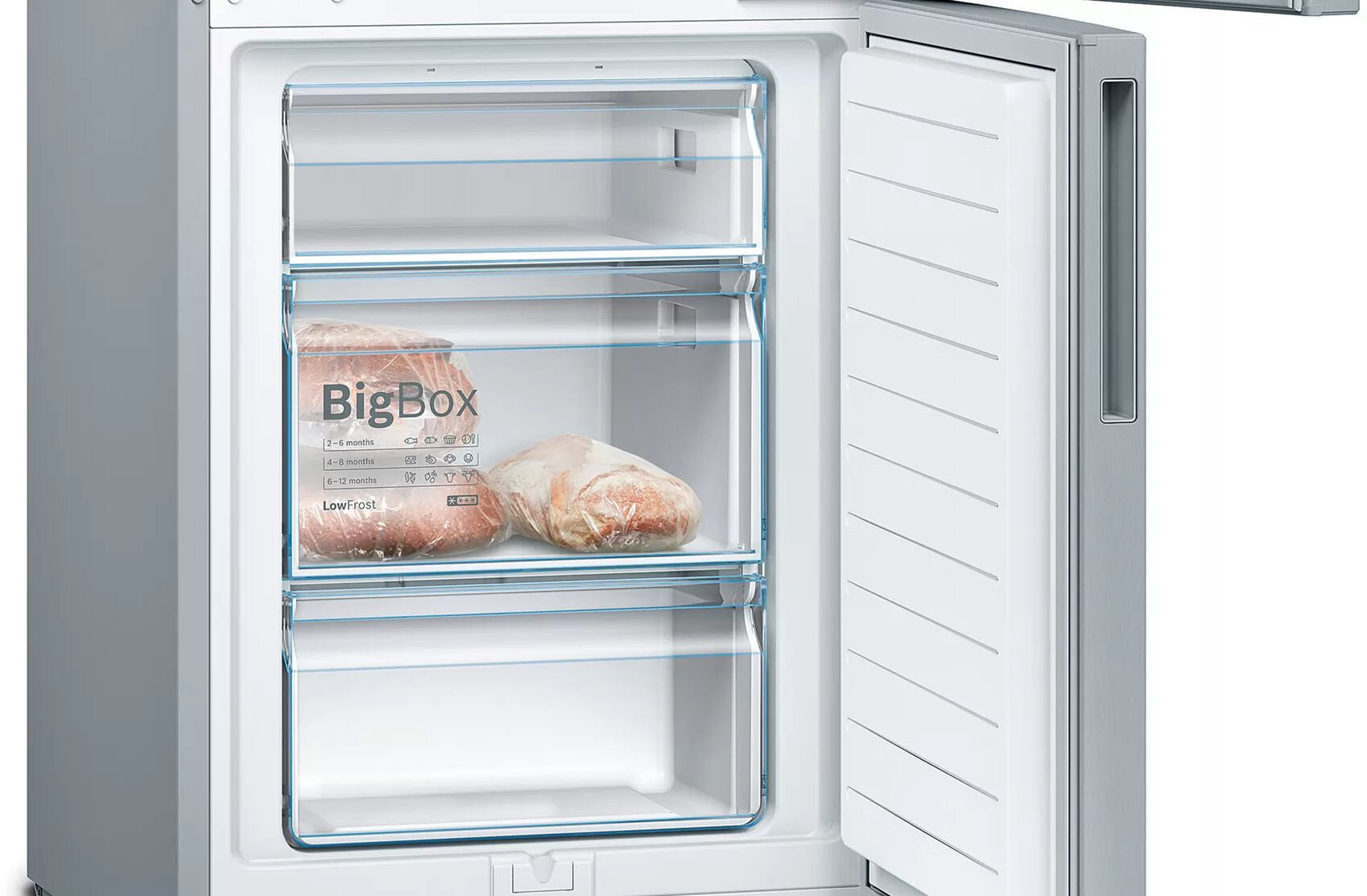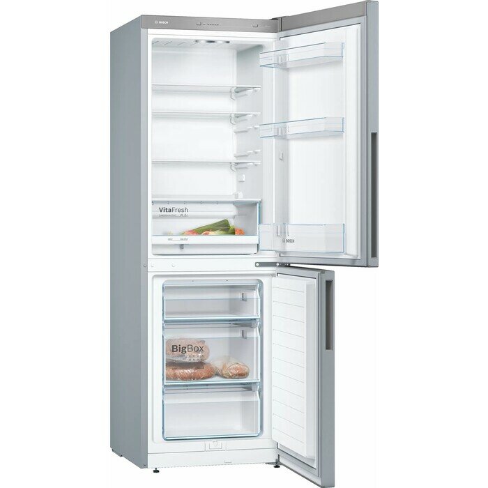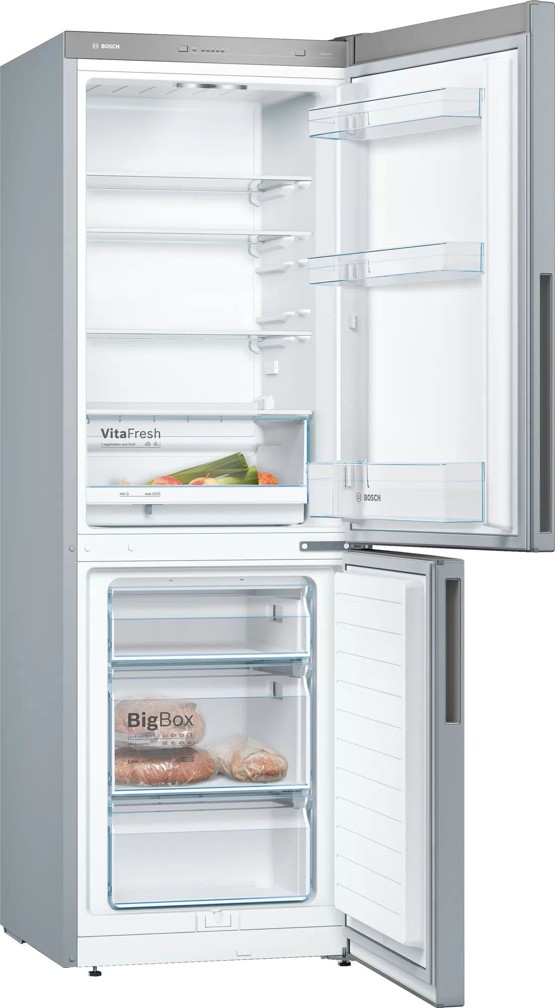 Холодильник Bosch серебристый, двухкамерный, общий объем 289л, с капельной разморозкой холодильной камеры, ручное, расположение морозильной камеры: снизу