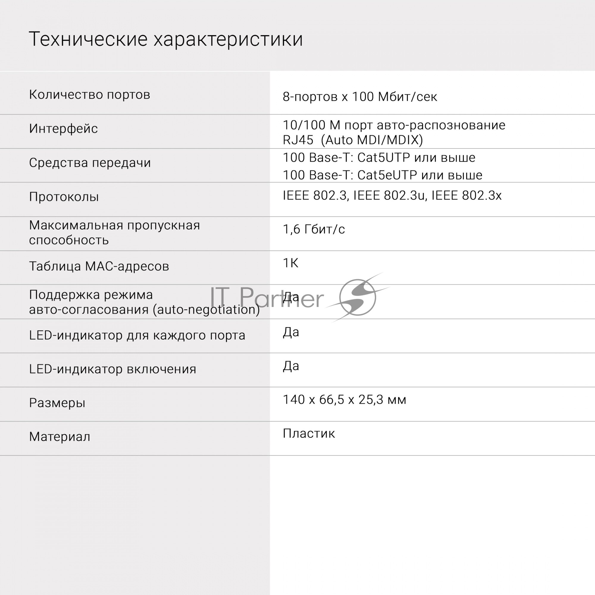 | Порты | 10/100BASE-TX 8 шт |