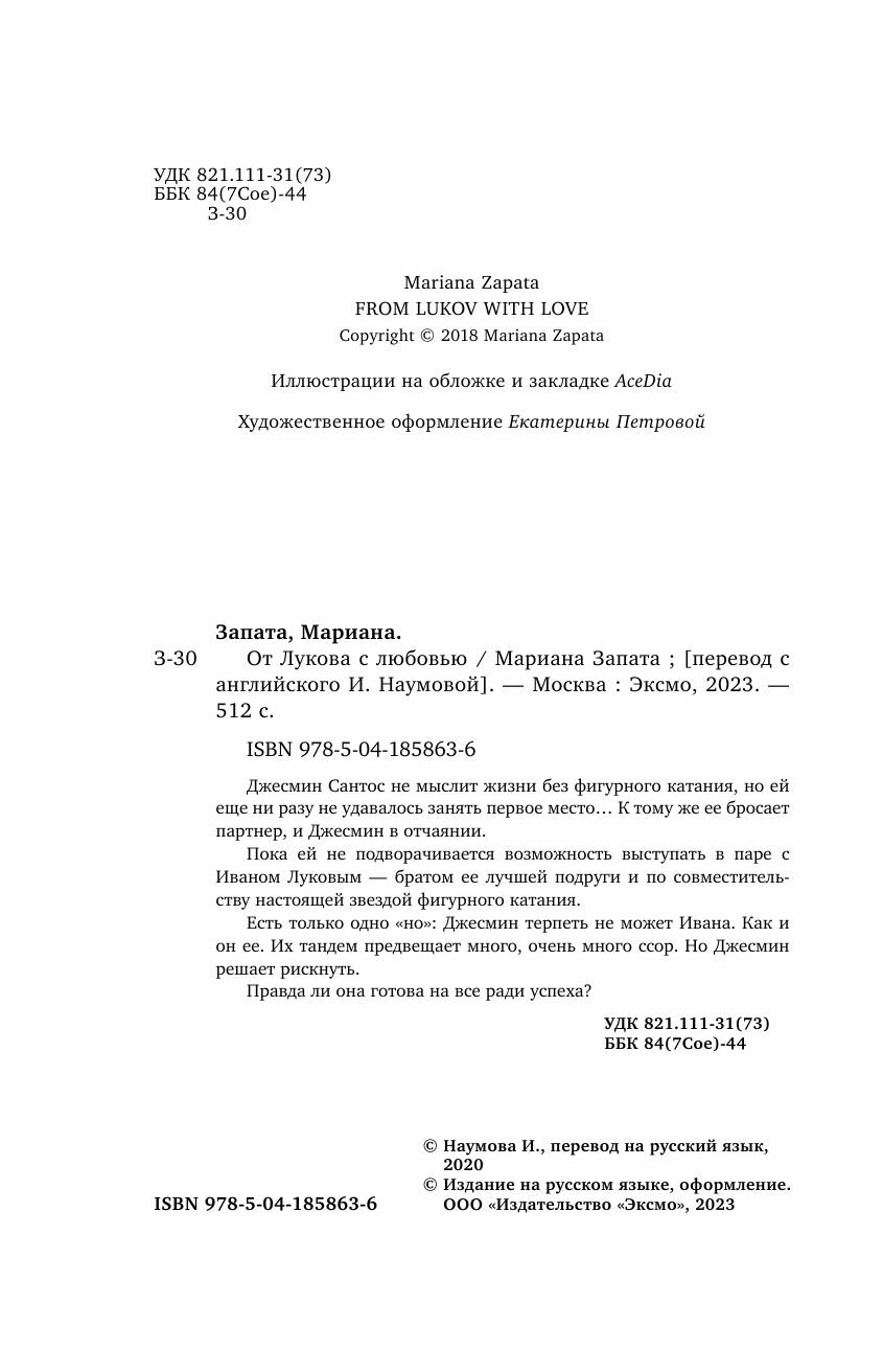 Книга: От Лукова с любовью (Мариана Запата); Эксмо, Inspiria, Редакция 1, 2023
