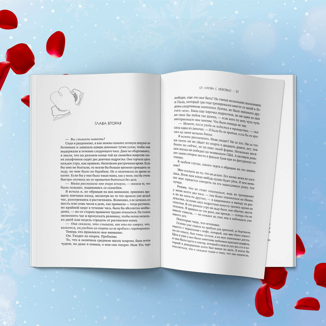 Книга "От Лукова с любовью" определённо достойна вашего внимания. В ней достаточно описаний фигурного катания(для любителей коньков). Прекрасно описанное взаимодействие героев.