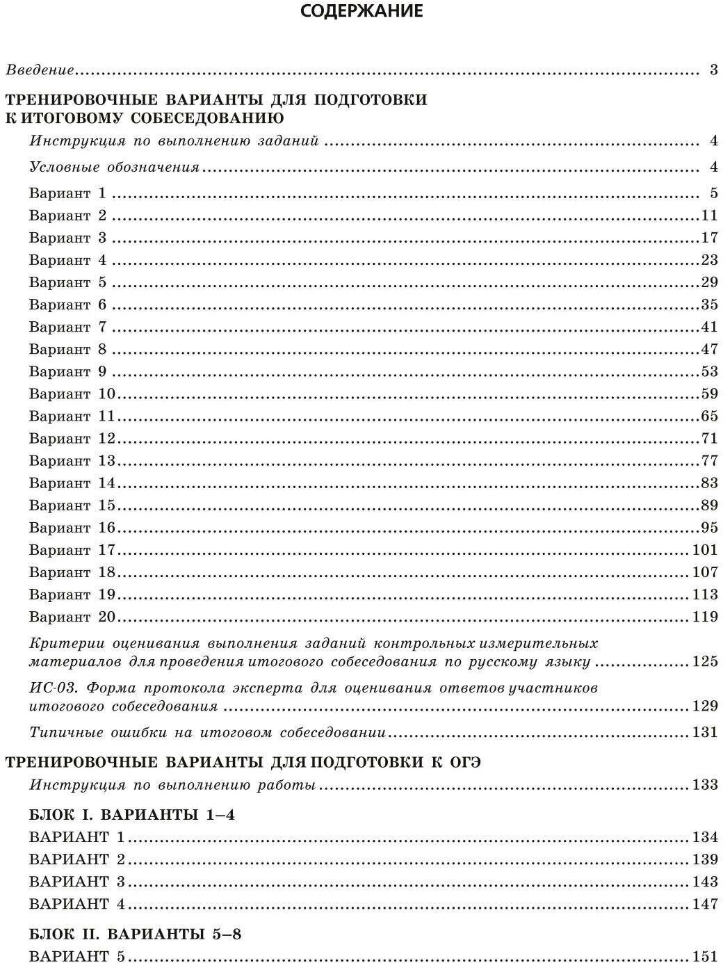 Пособие содержит 20 вариантов КИМ для проведения итогового собеседования и 20 типовых экзаменационных вариантов, соответствующих структуре экзаменационной работы. Каждый вариант включает задания разных типов и уровней сложности. В конце пособия приводятся ответы.