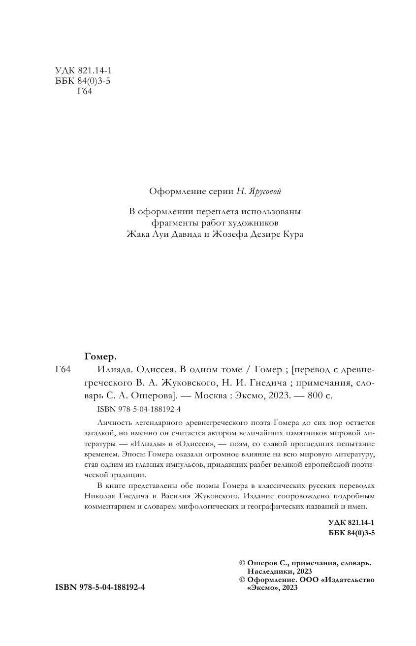 Илиада. Одиссея. Полное издание в одном томе (Гомер); Эксмо, Редакция 1, 2023