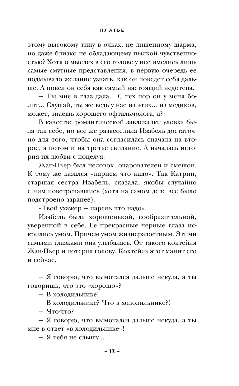 Жером де Вердьер в своей книге «Платье» применил этот метод к современности, и получился роман, наполненный острыми диалогами, французским юмором, иронией и гротеском — настоящий триумф абсурда.
