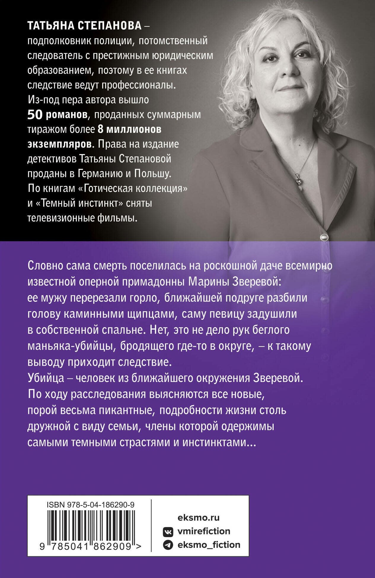 Словно сама смерть поселилась на роскошной даче всемирно известной оперной примадонны Марины Зверевой: ее мужу перерезали горло, ближайшей подруге разбили голову каминными щипцами, саму певицу задушили в собственной спальне. Нет, это не дело рук беглого маньяка-убийцы, бродящего где-то в округе, - к такому выводу приходит следствие. Убийца - человек из ближайшего окружения Зверевой. По ходу расследования выясняются все новые, порой весьма пикантные, подробности жизни столь дружной с виду семьи, члены которой одержимы самыми темными страстями и инстинктами...
