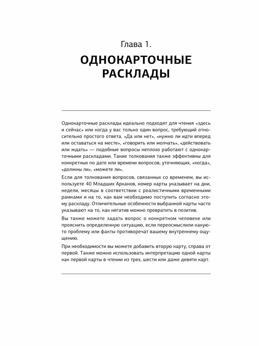 Неважно, какая у вас колода — Уэйта, Кроули или современная редкая авторская, — эта книга поможет вам сделать расклад и получить точный ответ. А для особенно значимых раскладов Кассандра Изон привела не только схемы, но и примеры их трактовки в конкретных ситуациях, что ценно и для новичков, и для профессионалов-тарологов.