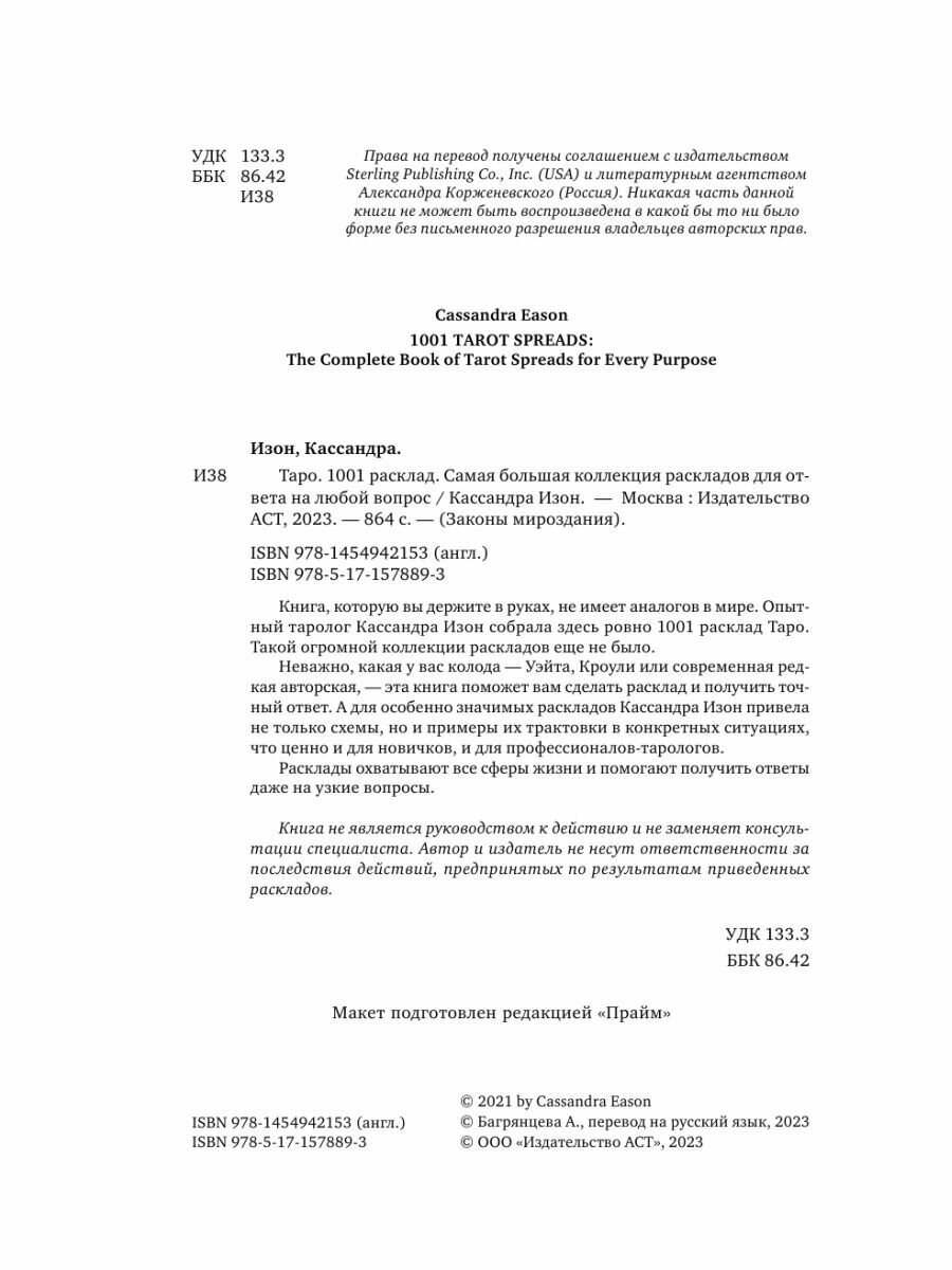 Книга, которую вы держите в руках, не имеет аналогов в мире, потому что содержит самую большую коллекцию раскладов — ровно 1001 расклад Таро. Такой огромной коллекции раскладов еще не было.
