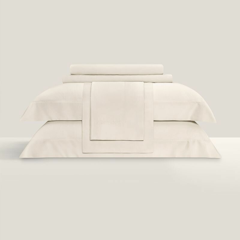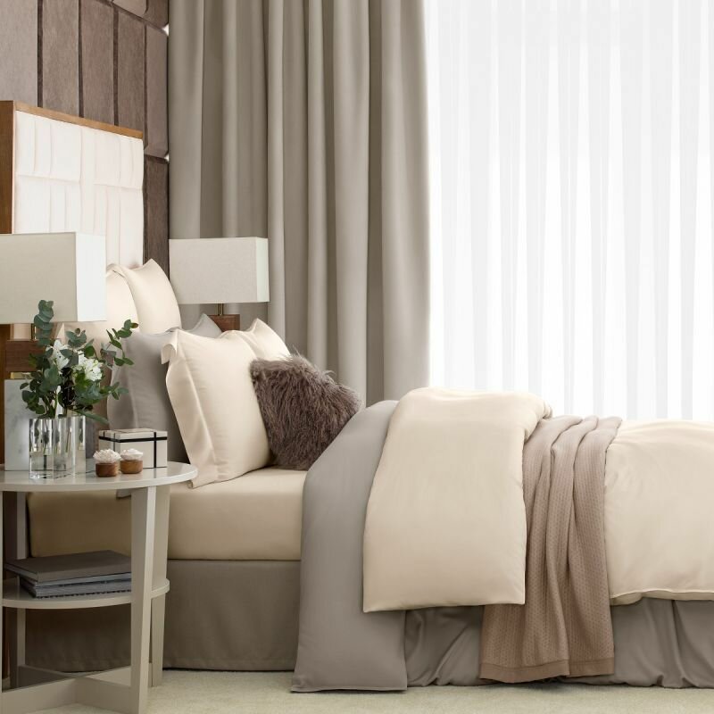 Постельное белье «Сенса» оттенка экрю создано из инновационной ткани SENSOTEX®.Этот мягкий, шелковистый материал из природных волокон эвкалипта пропитан специальным раствором Kefalis на основе экстракта водорослей Ионического моря. Такая обработка делает его на 10% прочнее, на 20% менее сминаемым и на 30% повышает шелковистость ткани. SENSOTEX® – экологически чистая ткань, при ее производстве применяется только органический растворитель. Она прекрасно пропускает воздух, «дышит», способна регулировать температуру – на таком белье комфортно спать в любое время года, а в жаркую погоду прикосновение к нему подарит легкую прохладу. SENSOTEX® тактильно приятен и подходит людям с чувствительной кожей.Нежные пастельные оттенки расслабляют и великолепно подходят для спальни. Единственное украшение этого изысканного комплекта – широкий бордюр со сложной отделочной строчкой на наволочках.