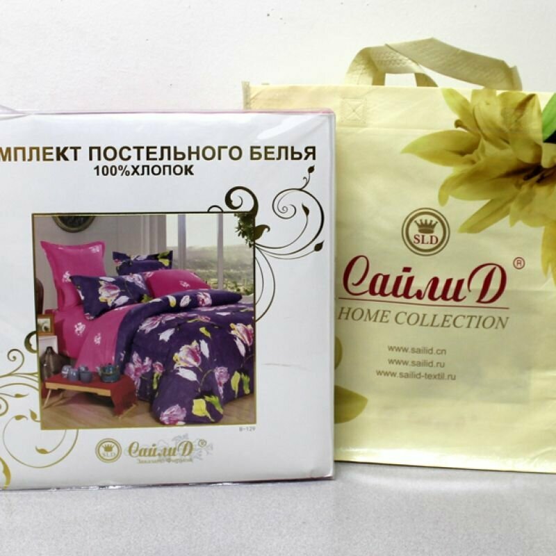 Комплект постельного белья СайлиД 1,5-спальныйВ комплекте: пододеяльник 1шт. 150х215см (застежка - молния), простыня 160х220см, наволочки (с клапаном) 70х70см-2шт.Ткань: сатин (100% хлопок) 125 г/м2Отделка: печатный рисунок с компаньономОсновная ткань - сторона А пододеяльника и наволочки, из компаньона - сторона В пододеяльника, простыня. Упаковка: конверт ПВХРекомендации по уходу: Стирка при температуре до 40 градусов; отжим на средних оборотах; сушка при температуре до 60 градусов; не использовать отбеливатели; химчистка запрещена; глажка при температуре до 150 градусов. Чтобы постельное белье надолго сохранило свое качество, рекомендуется стирать белья вывернутым на изнанку, а белье из деликатных тканей или с отделкой кружевом или вышивкой - в мешке для стирки, чтобы избежать случайных зацепок. использование кондиционера для белья сделает его более мягким и послушным для разглаживания.Сатин - самая популярная ткань, постельное белье из которой выбирают хозяйки. Гладкая, слегка шелковист
