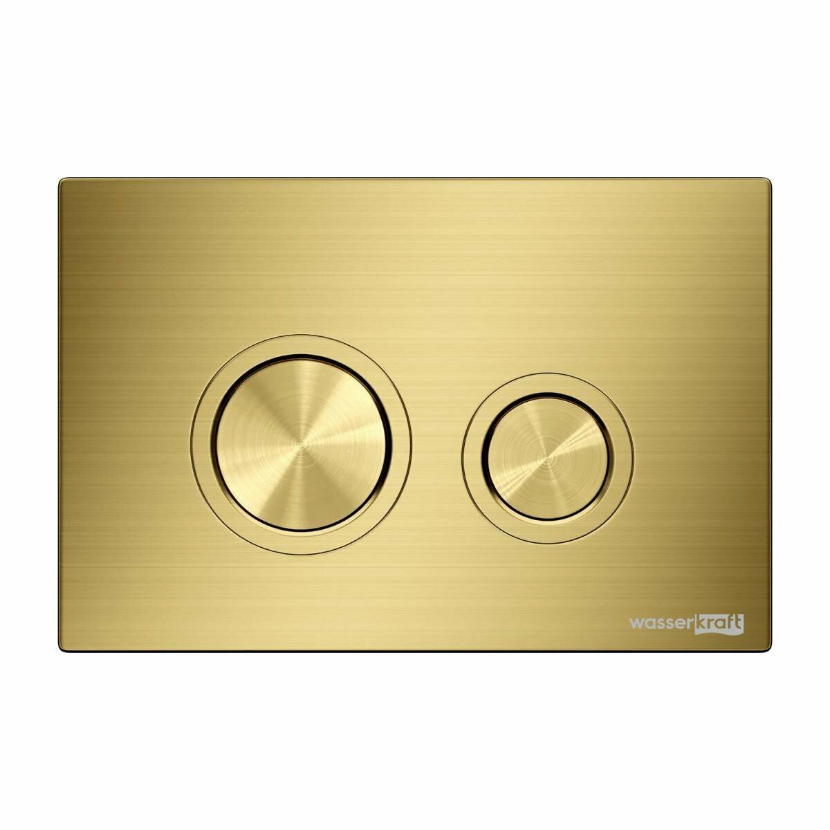Кнопка смыва в отделке матового золота от WasserKRAFT - это стильный и функциональный элемент, который отлично дополнит вашу ванную комнату или туалет. Вот основные характеристики этой кнопки смыва: