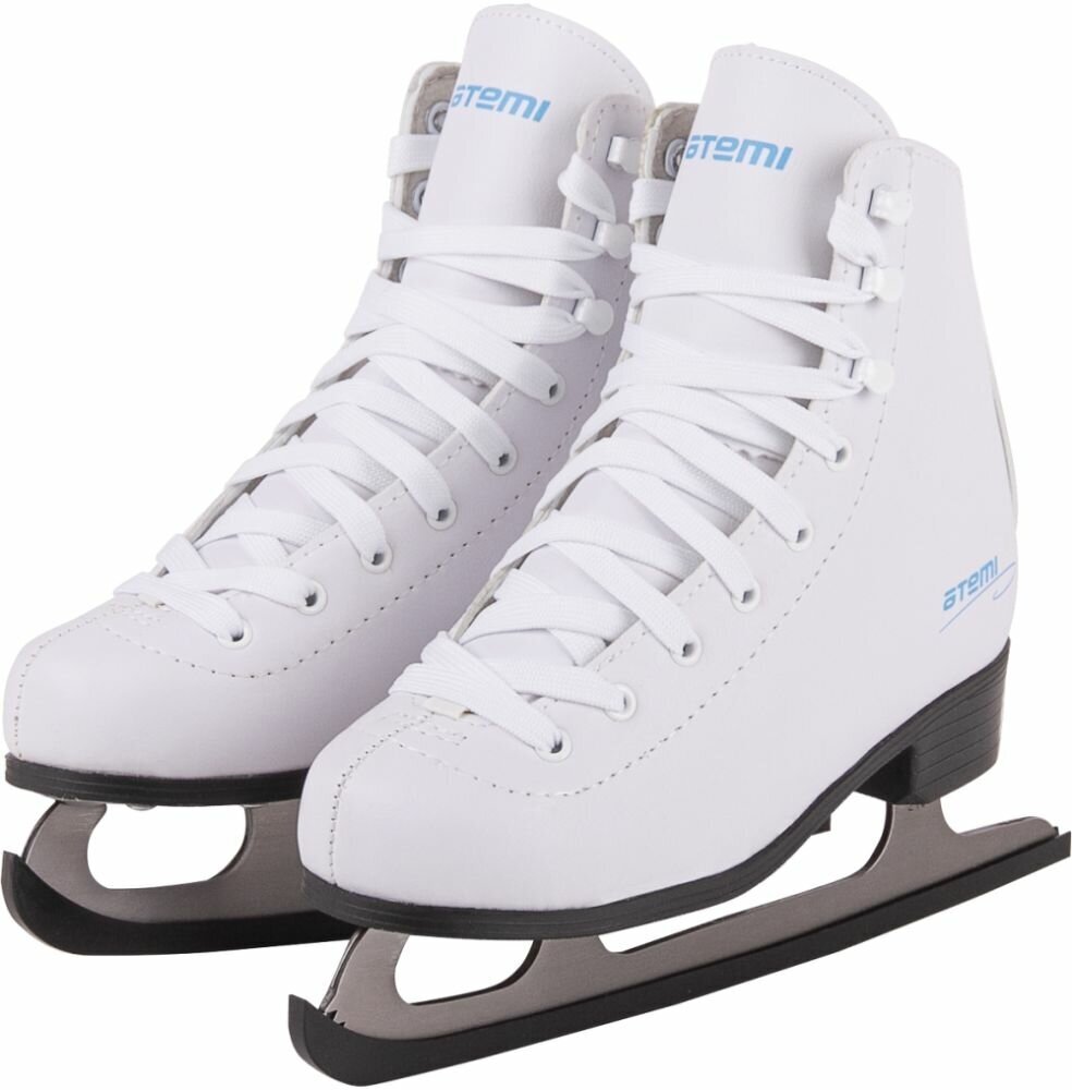 Фигурные коньки Atemi AFSKD01. Белоснежная модель для девочек, мечтающих заниматься фигурным катанием. Лезвия из нержавеющей стали 3,5 мм., обеспечивают прочность и долгий срок службы модели. Верх из морозоустойчивой искусственной кожи высокого качества, защищает ноги от влаги и холода во время катания. Подкладка из EVA обеспечивает максимальный комфорт. Подошва из морозостойкого пластика позволяет эксплуатировать модель при температуре до -20 градусов. Эргономичная форма ботинка обеспечивает надёжную фиксацию стопы, защищая ноги от травм. Упаковка - цветная коробка.