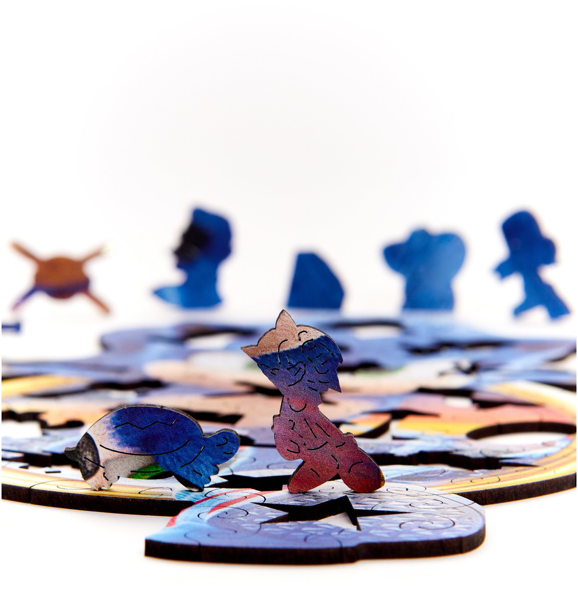 Деревянные пазлы – невероятно крутая штука, которую можно подарить кому угодно и это будет вполне уместно. Посудите сами! Эстеты будут в восторге от красоты картин и отдельных деталей, где каждая представлена особой фигуркой. Любители пазлов будут рады собрать что-то настолько нестандартное. Те, кто любит сложные головоломки, удивится, как непросто работать с нестандартными формами, но при этом и любители спокойных развлечений будут довольны – можно с удовольствием перебирать фрагменты и никуда не спешить. Фанаты погружения в процесс оценят тактильные ощущения от фрагментов головоломки и запах древесины. В общем, все в плюсе!