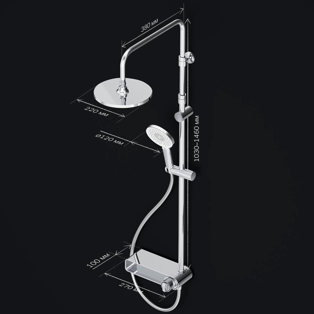 - Высота душевой штанги: 1030-1460 мм.