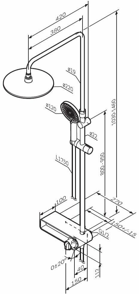 | Комплект поставки | Вентиль; Верхний душ; Держатель для лейки; Душевая лейка; Душевая штанга; Кронштейн для верхнего душа; Переключатель потоков; Смеситель; Шланг для душа |